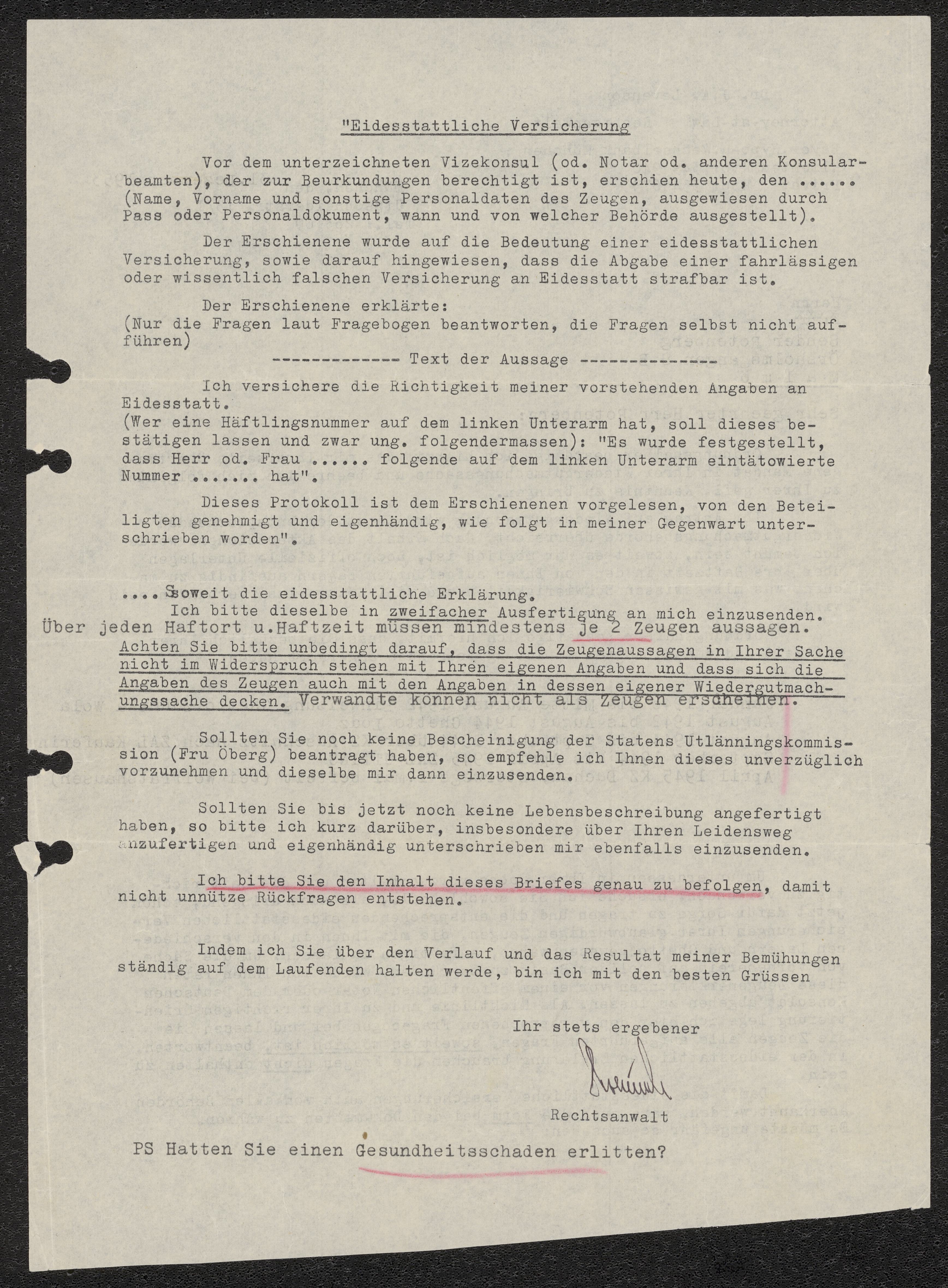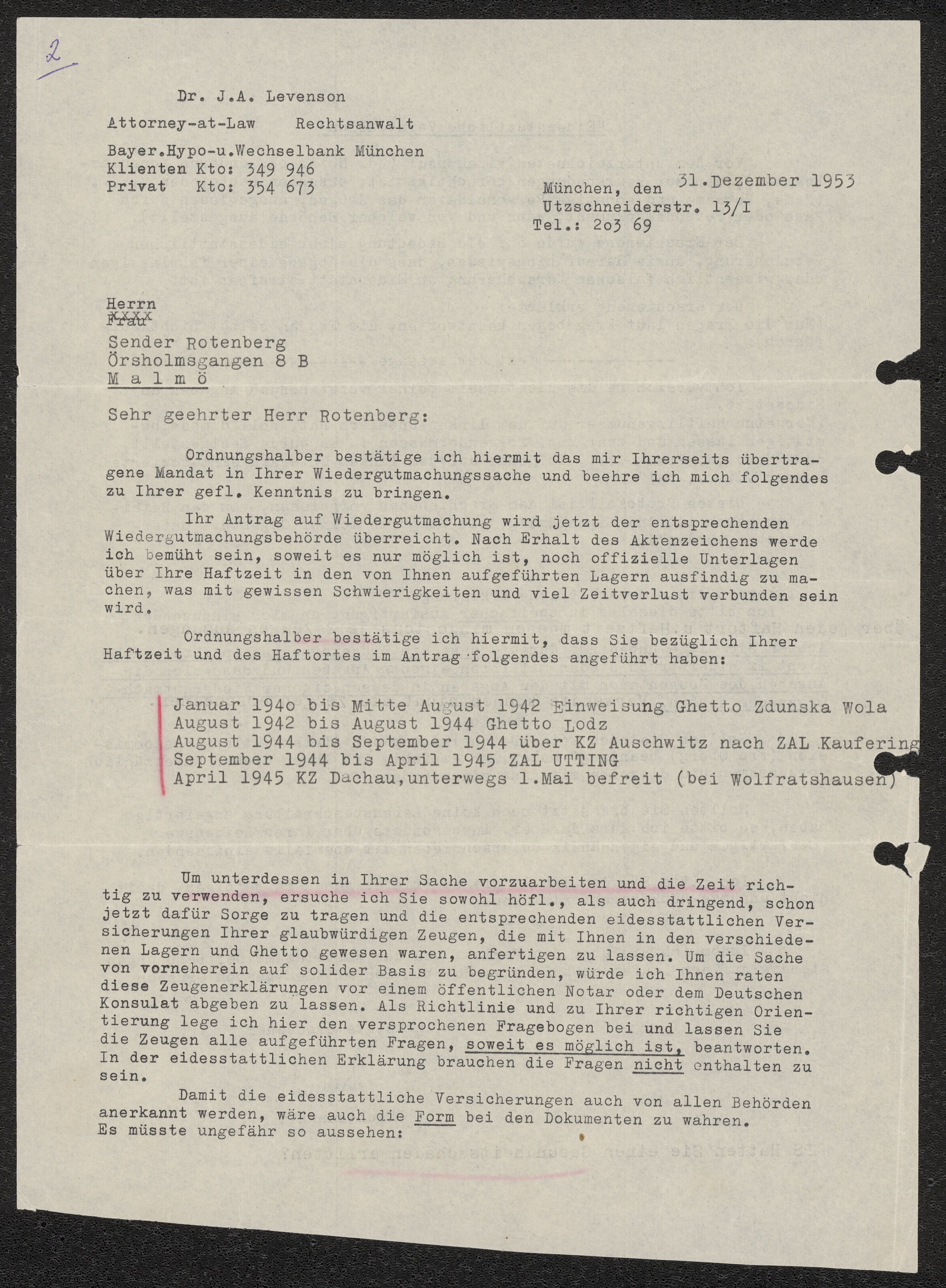 Brev från advokat till Sender Rotenberg 1953-12-31