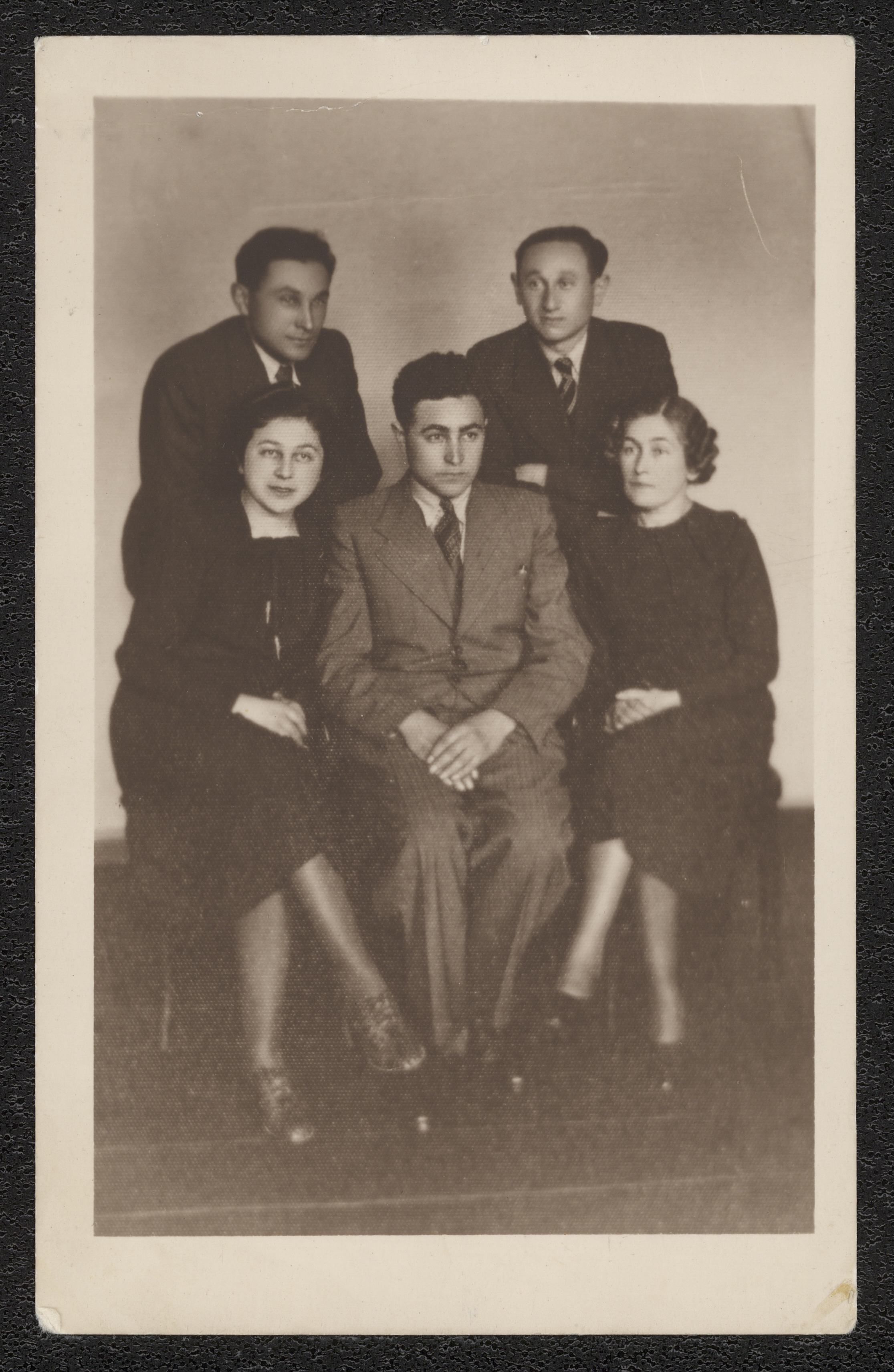 Svartvitt foto på familjen Rotenberg, David, Sender, Basia, Abram och modern Itta.
