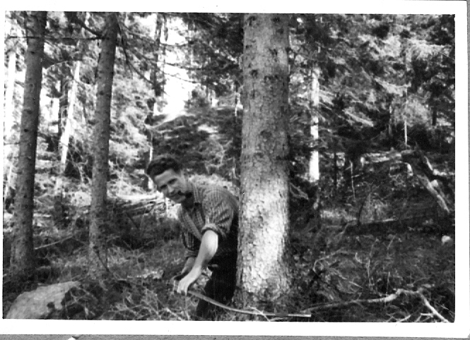 Józef Pastuszuk i det skogsarbete som han och hans kollegor genomförde vid interneringen i Sverige under andra världskriget.