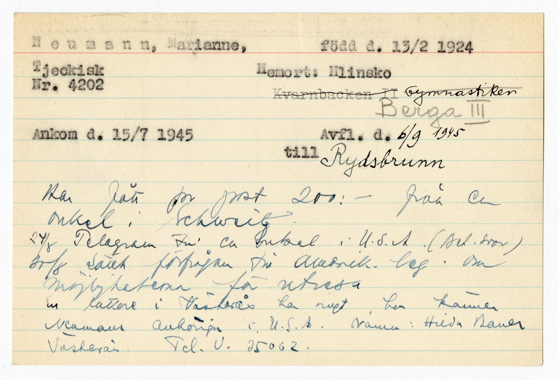 Registerkort Marianne Neumann