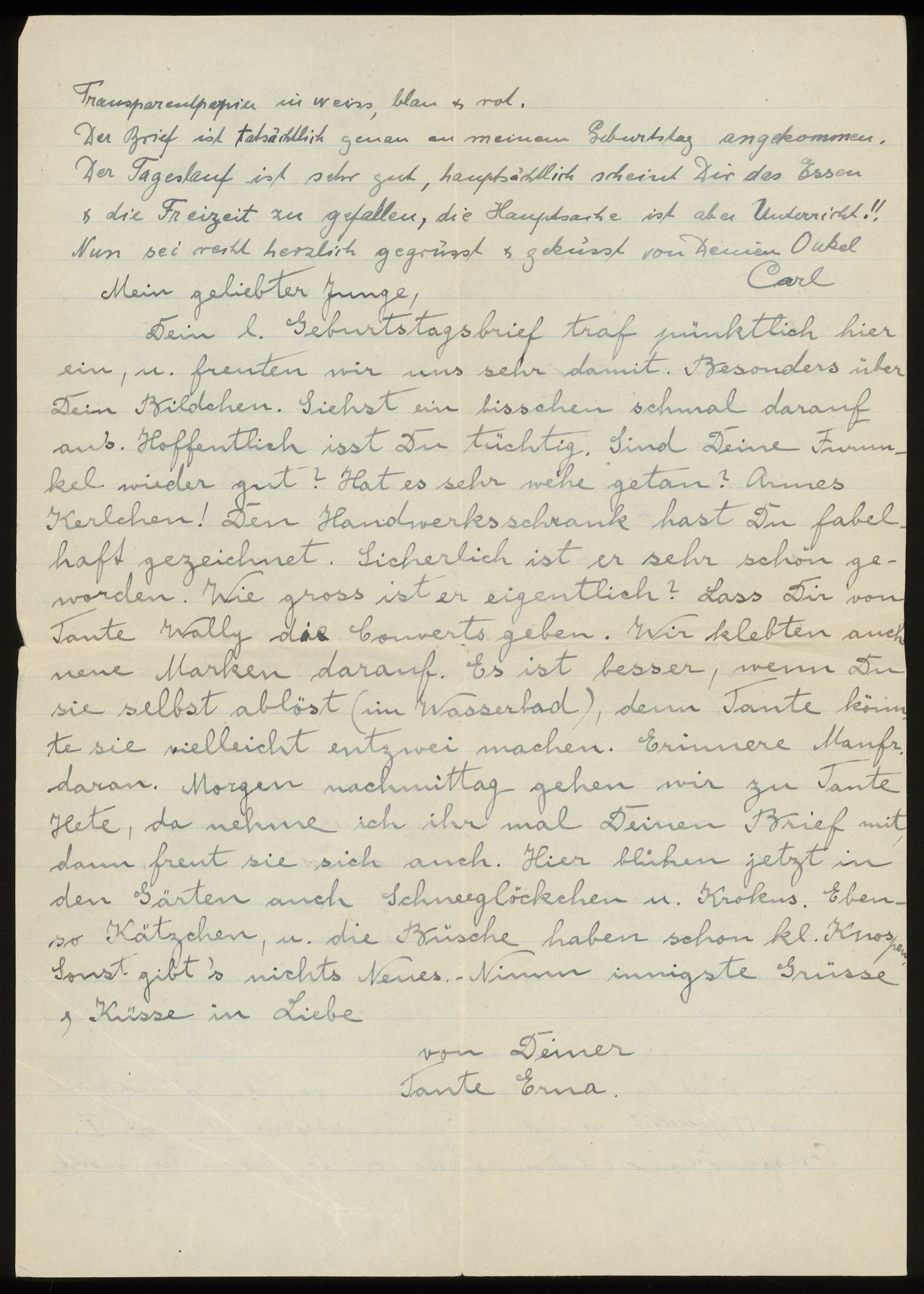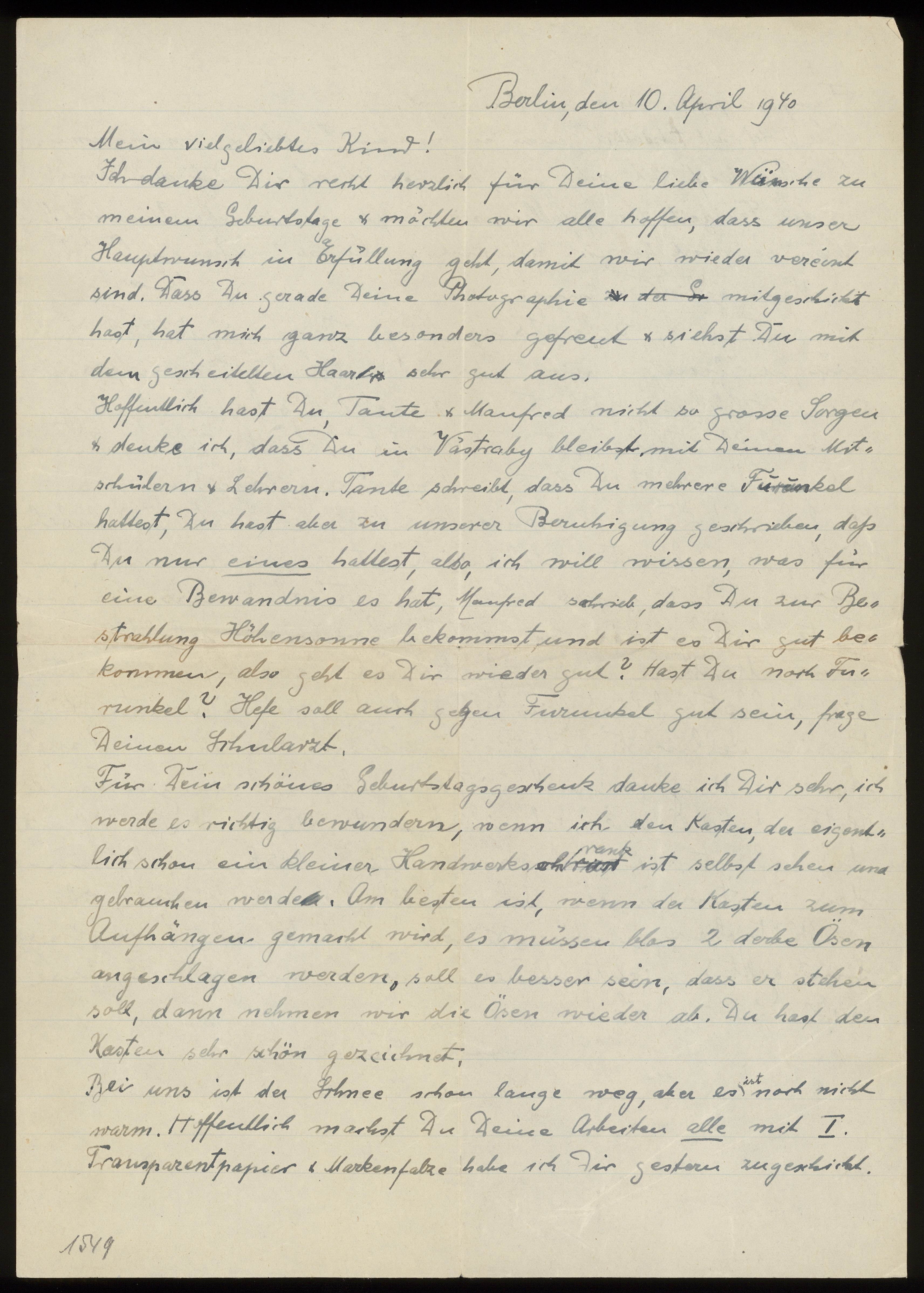 Brev från Onkel Carl och Tante Erna till Ludwig Posner daterat 10 april 1940.