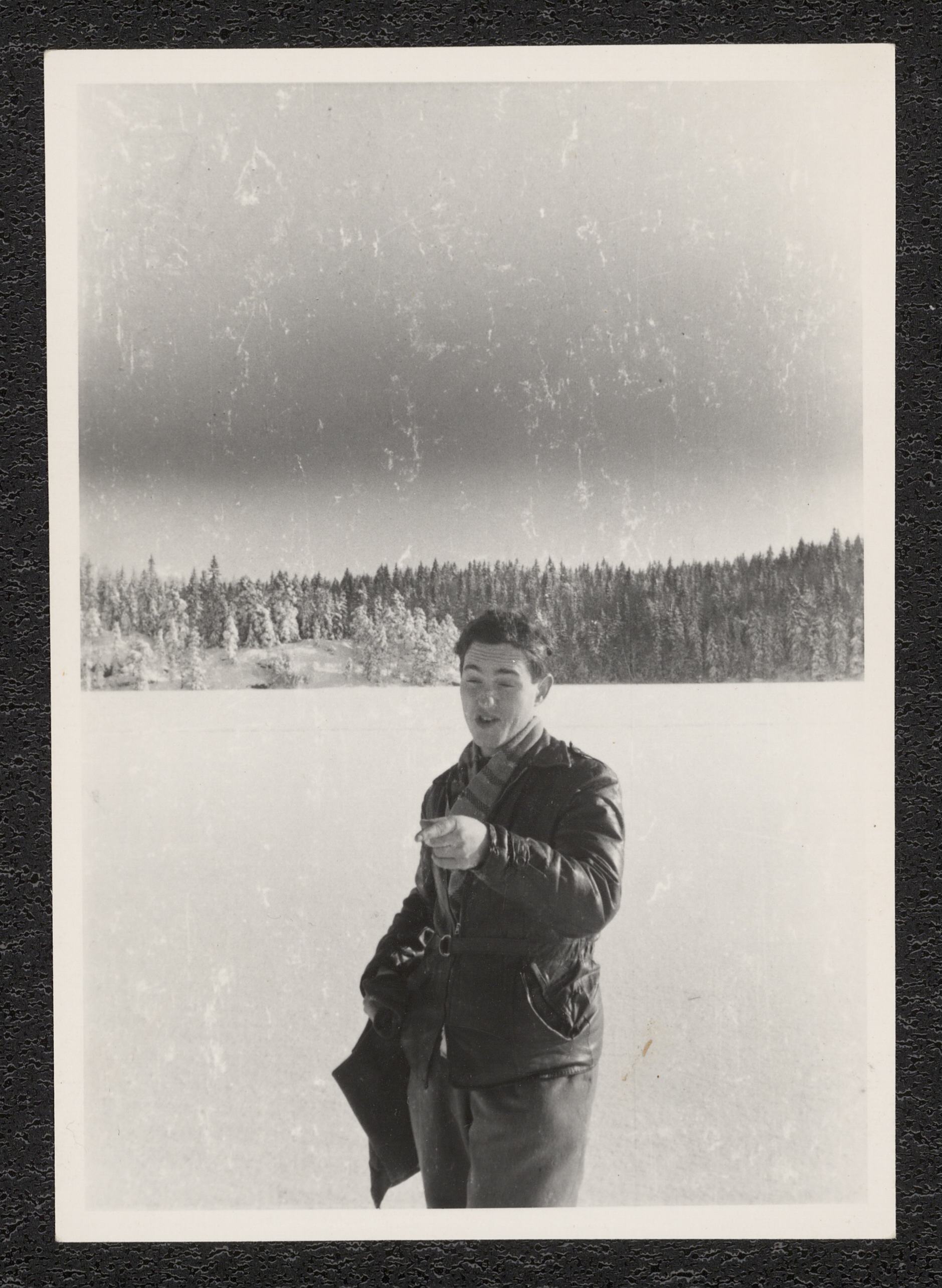 Georg Witt står på isen med en snöig skog i bakgrunden.