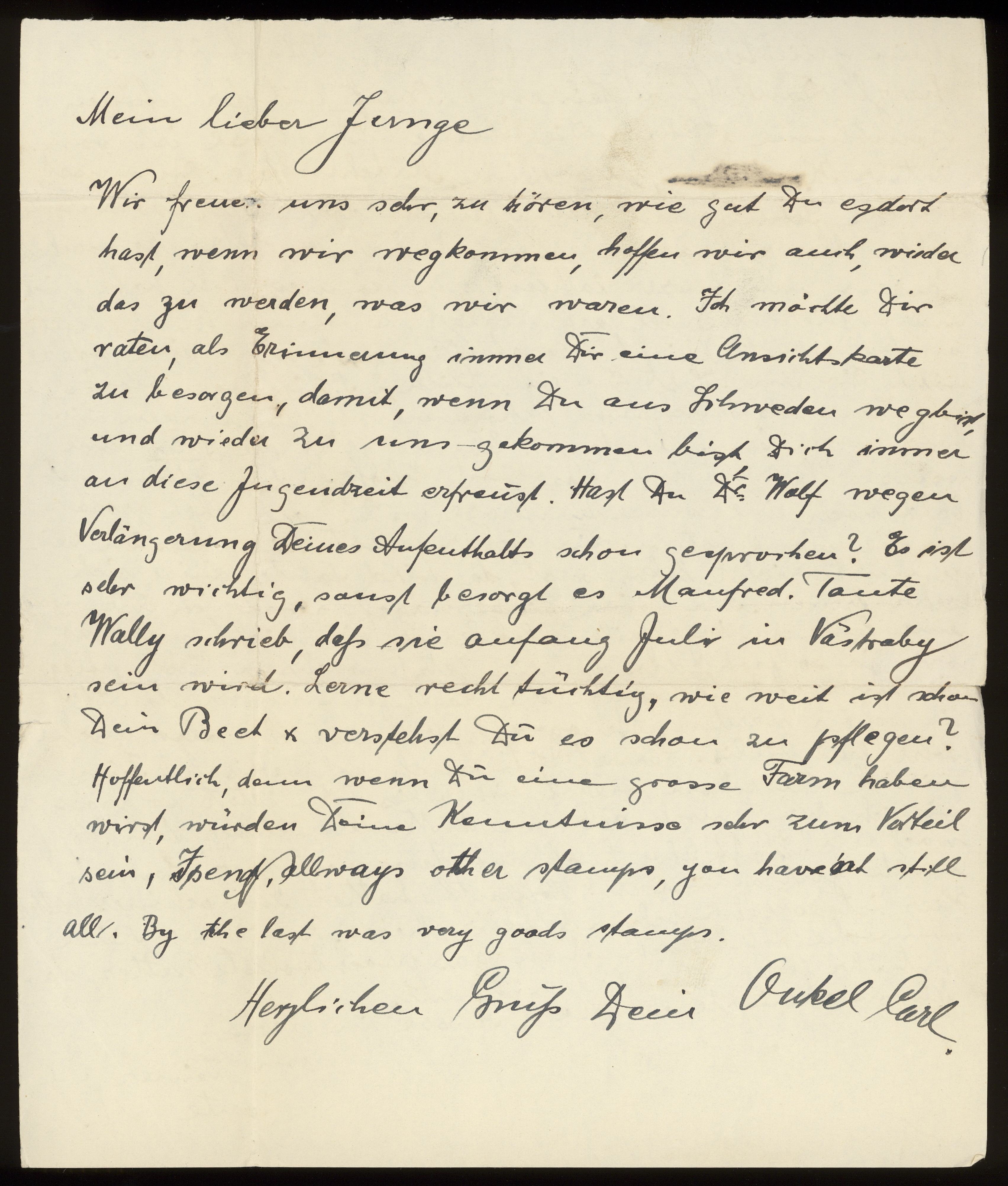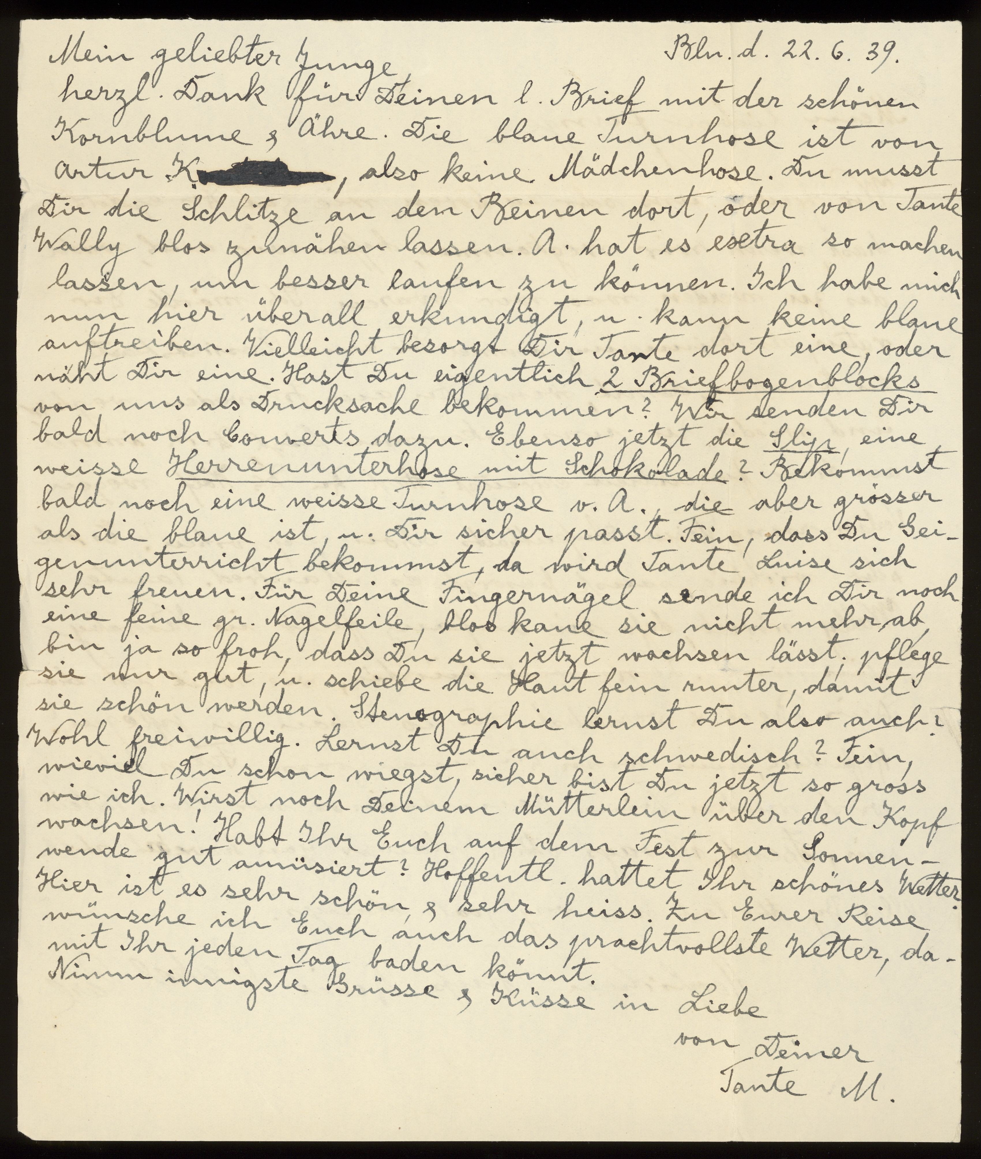 Brev från Onkel Carl och Tante M till Ludwig Posner daterat 22 juni 1939.