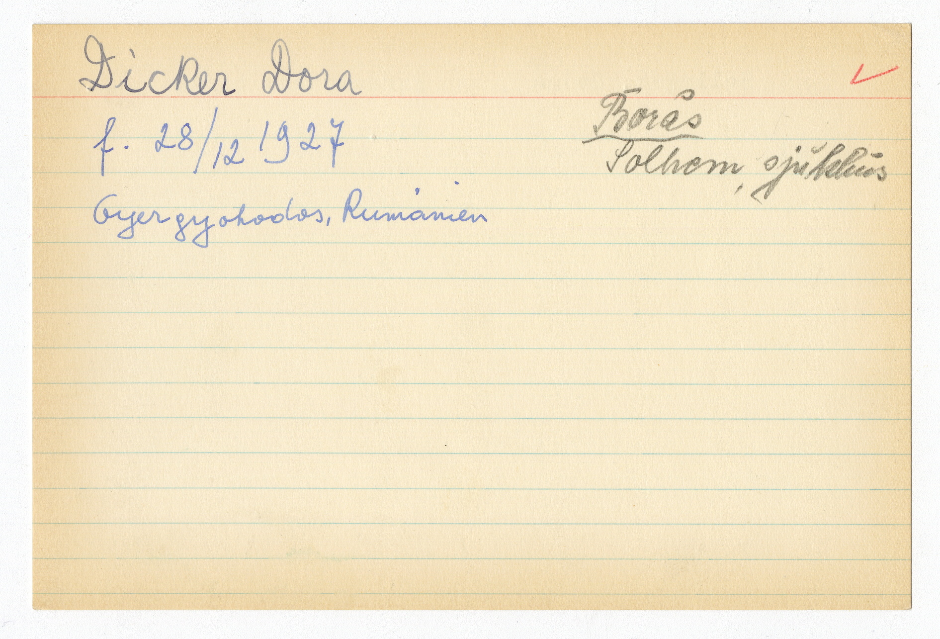Registerkort Dora Dicker och Selma Solinger