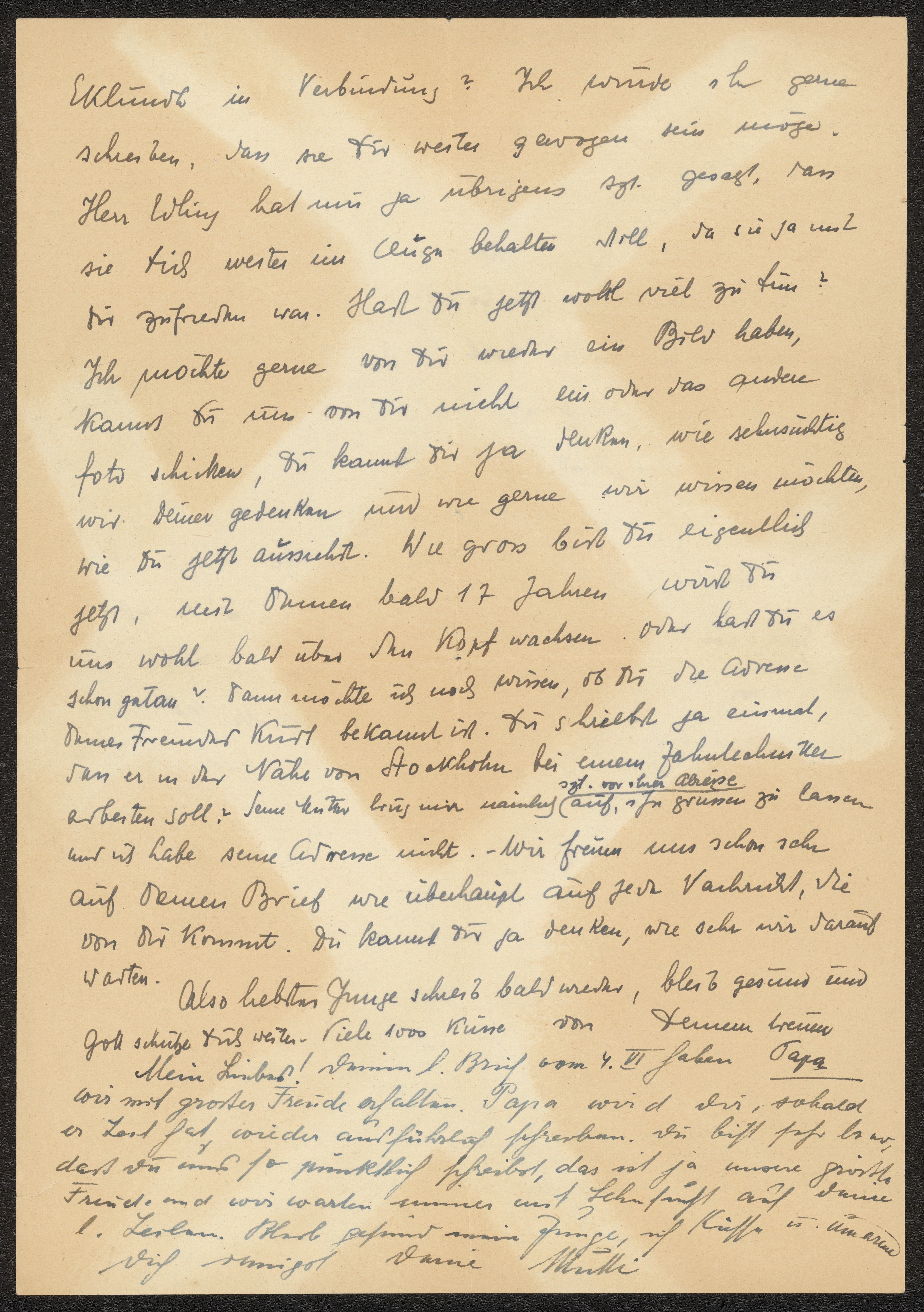 Brev till Otto Ullman från föräldrarna Josef och Elise Ullmann daterat 20 juni 1942 Wien.