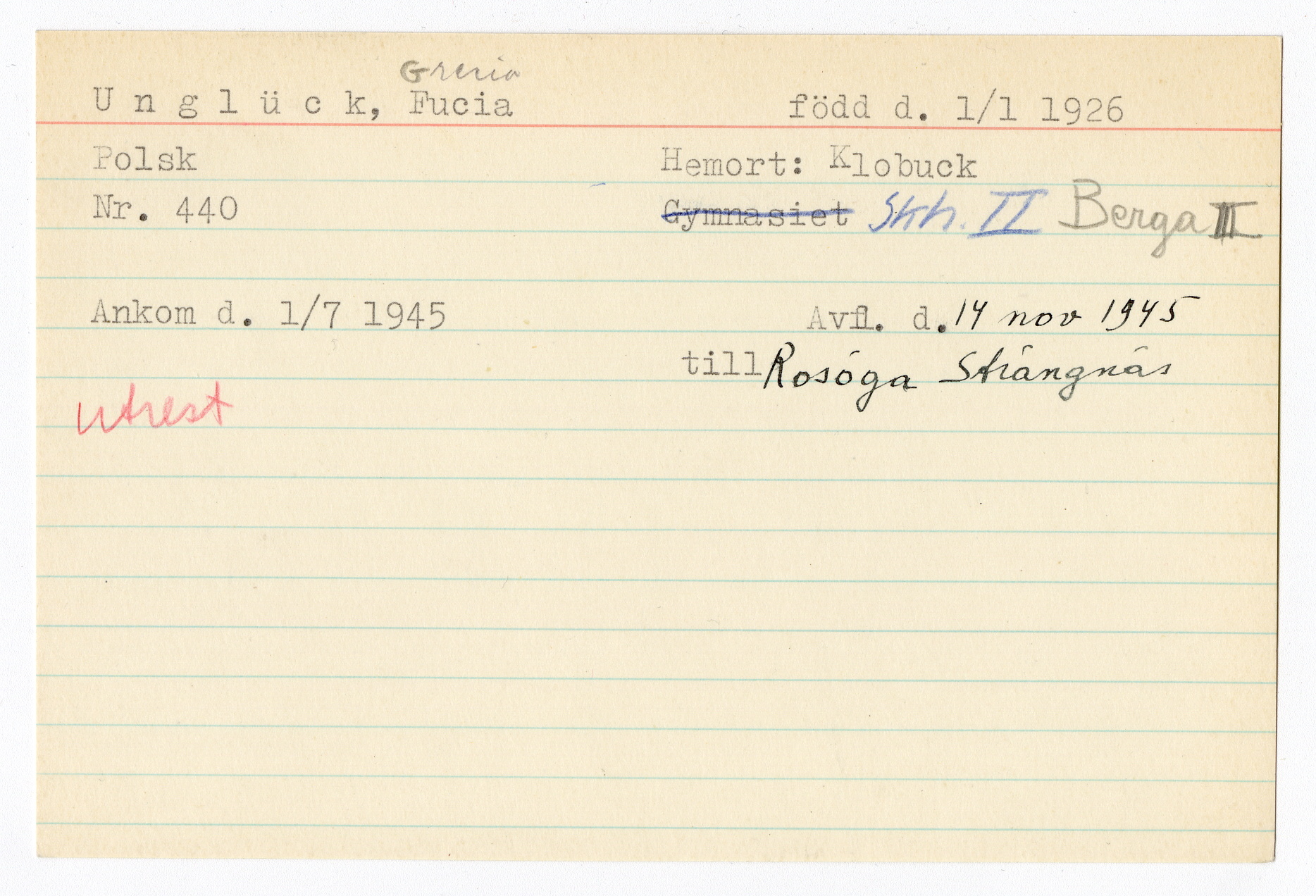 Registerkort Fucia Greria Unglück