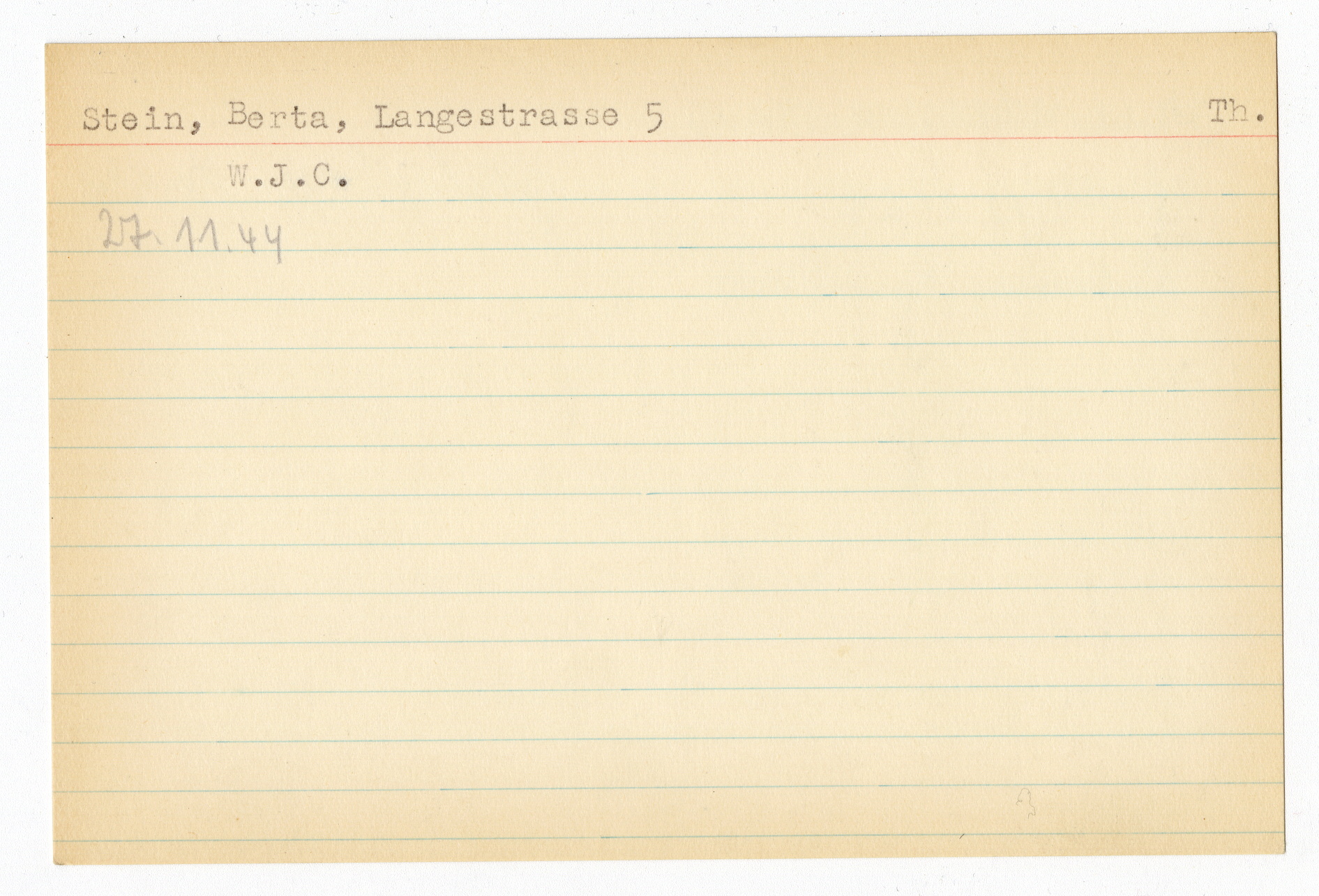 Ett skrivkort med patientuppgifter gällande Sari Grünberger. På baksidan uppgifter om matpaket till Berta Stein i Theresienstadt.