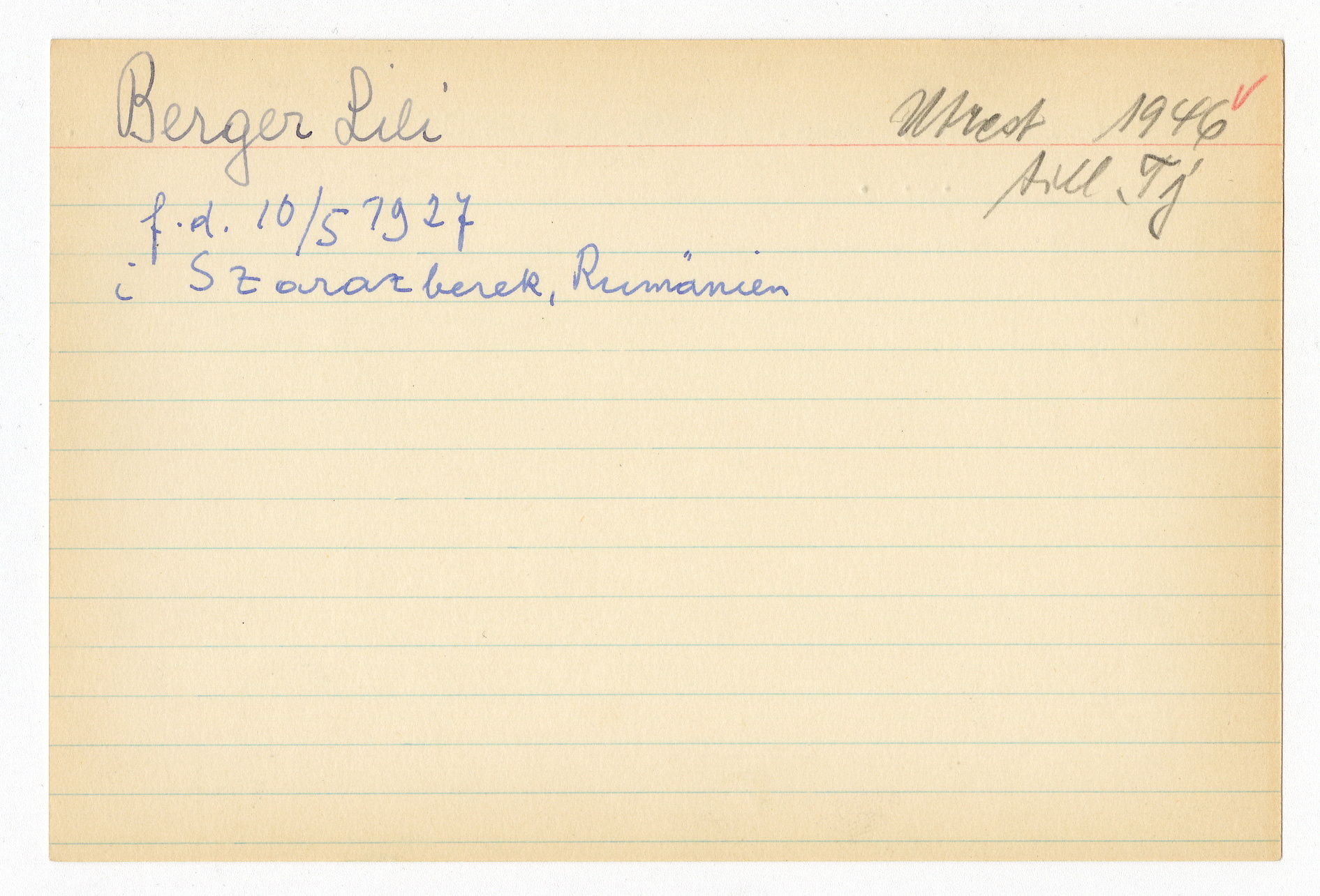 Registerkort Lili Berger och Rosa Stecklmacher