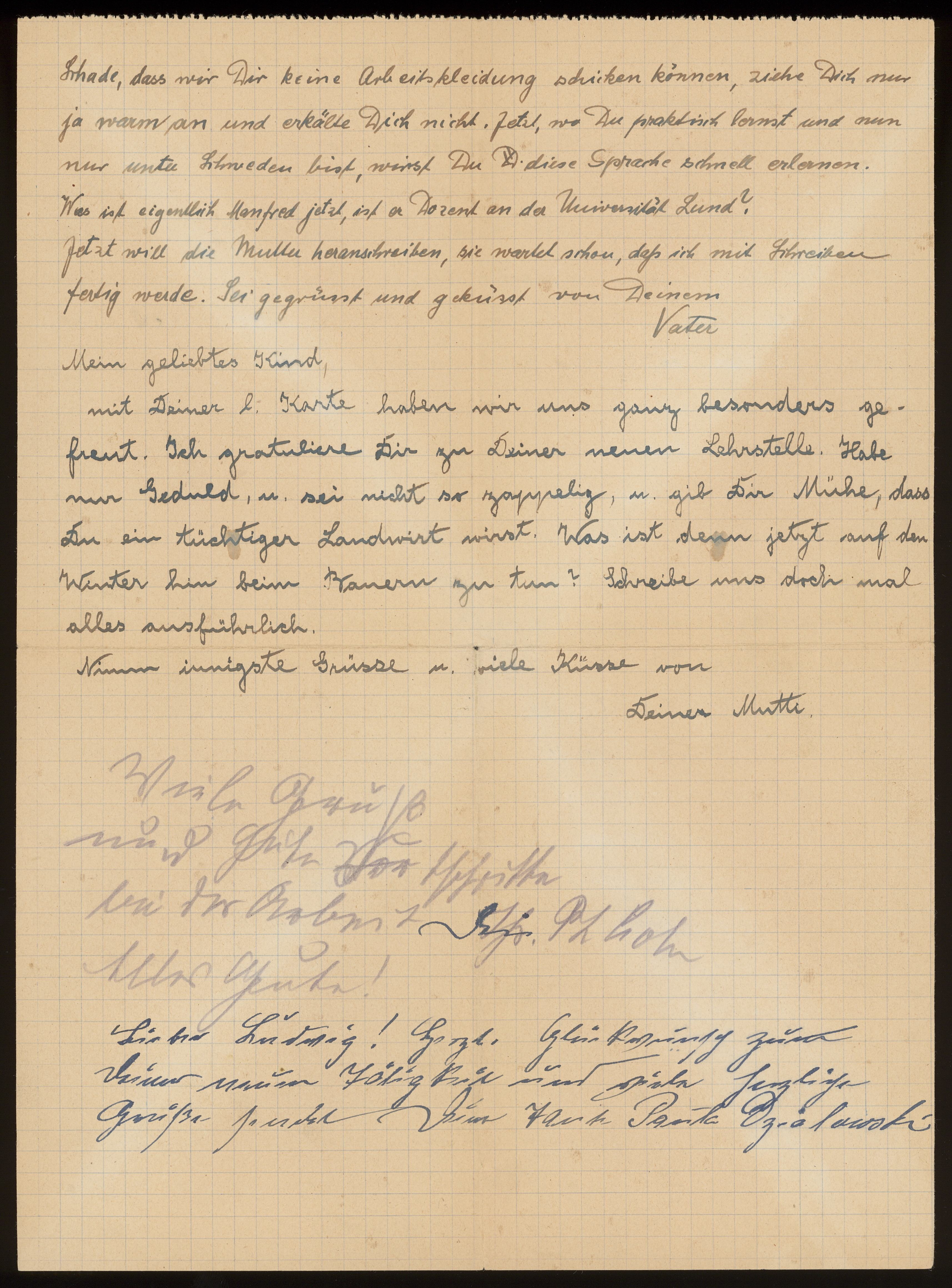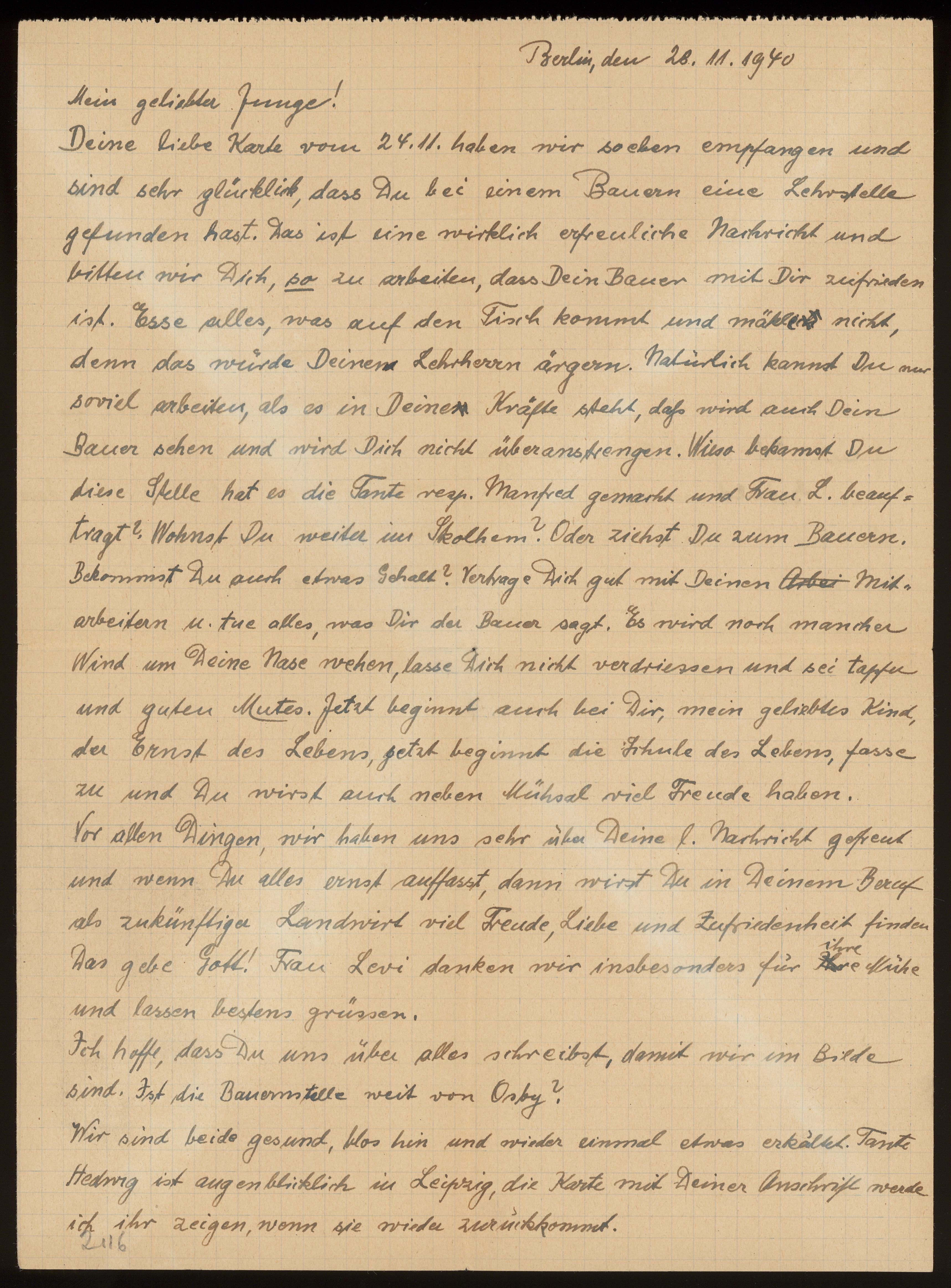 Brev från föräldrarna Anna och Siegfried Posner och otydlig avsändare till Ludwig Posner daterat 28 november 1940.