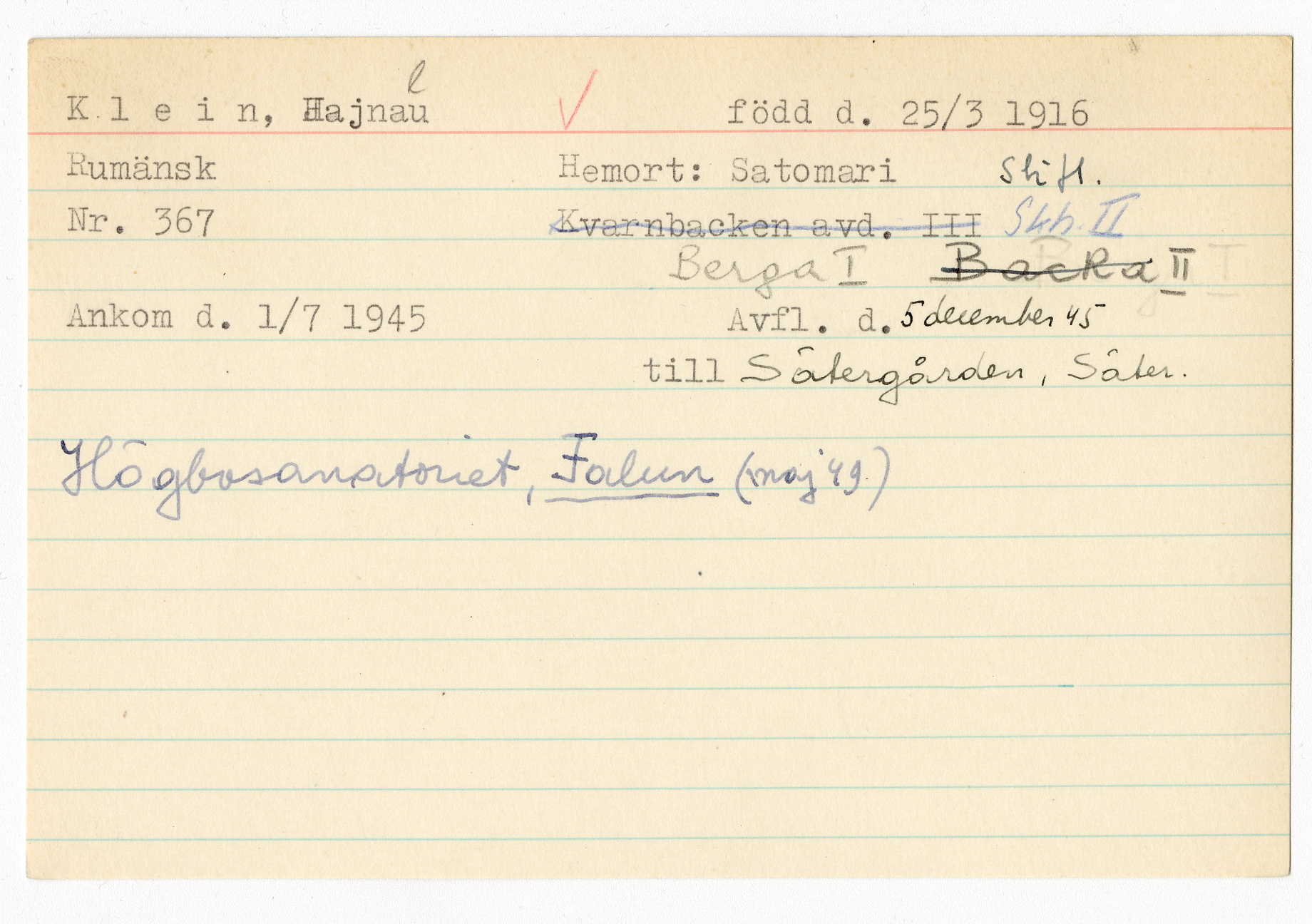 Registerkort Hajnal Klein