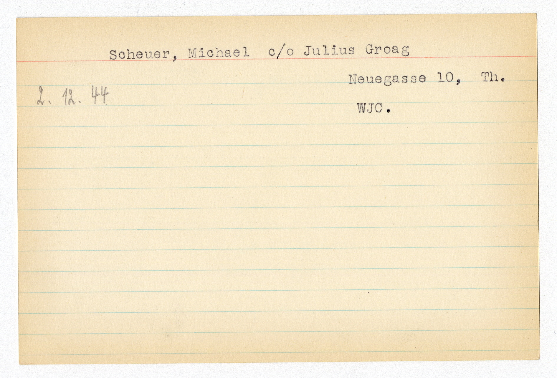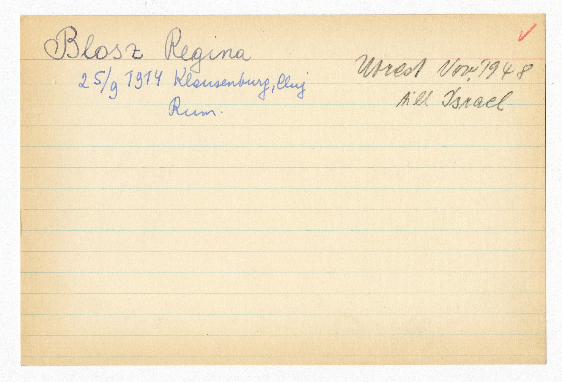 Ett skrivkort med patientuppgifter gällande Regina Blosz. På baksidan uppgifter om matpaket till Michael Scheuer i Theresienstadt.