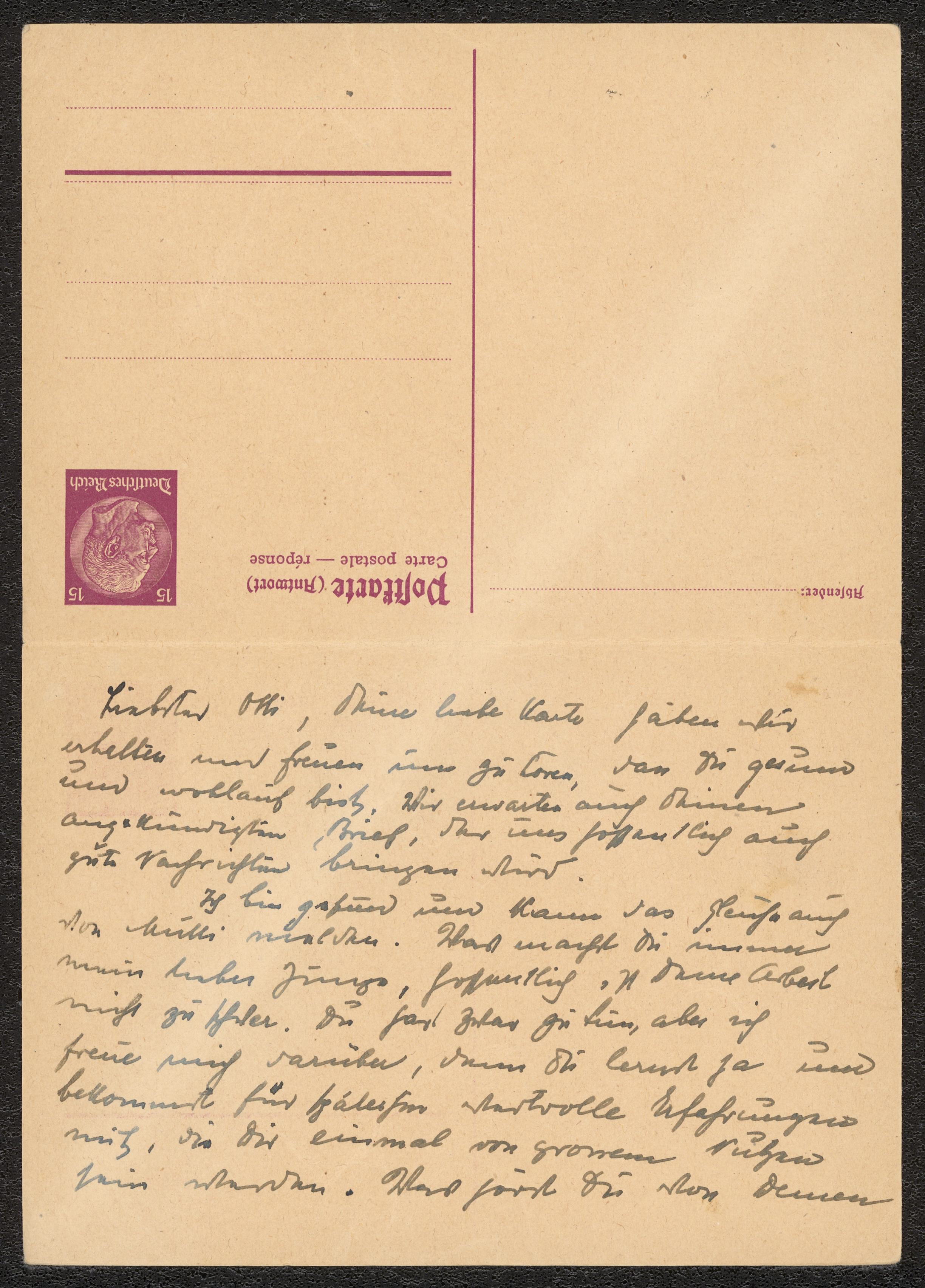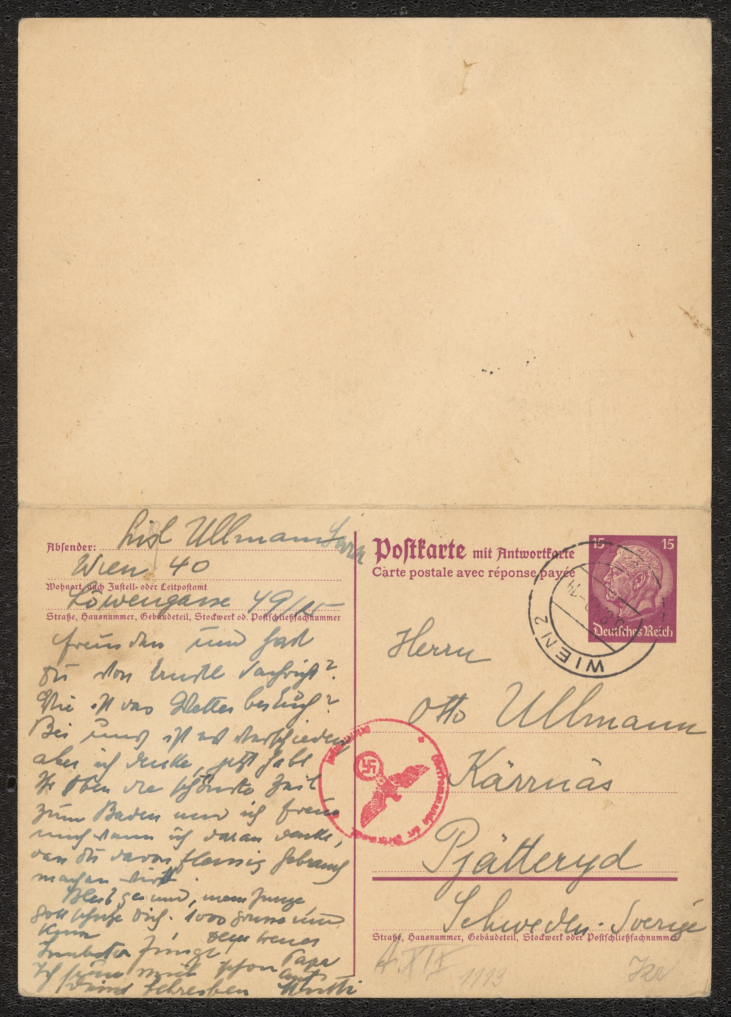 Brev till Otto Ullman från föräldrarna Josef och Elise Ullmann daterat 5 augusti 1940 Wien.