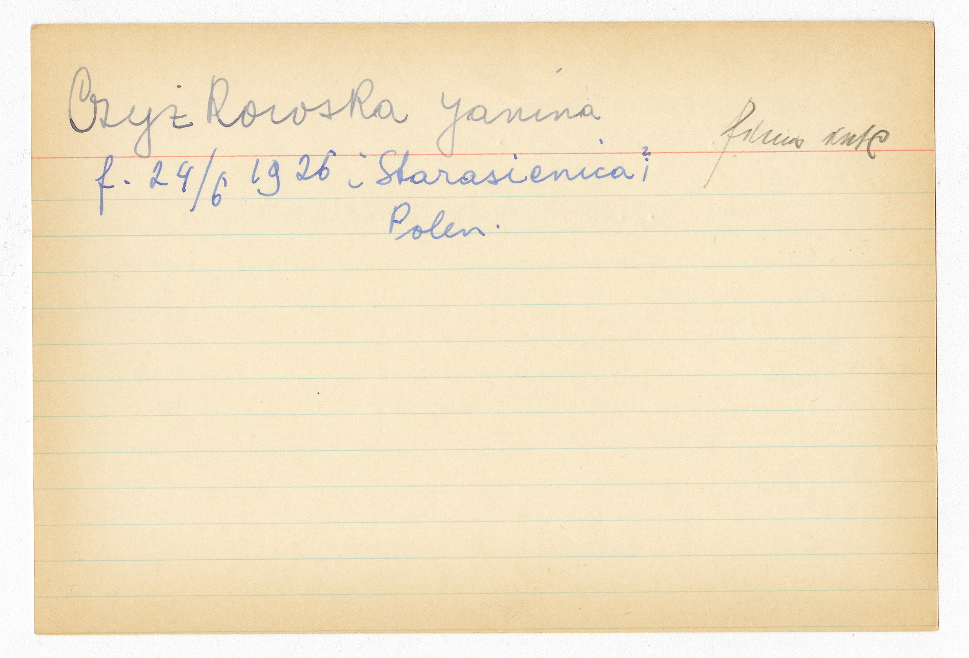 Registerkort Janina Czyźkowska och Hans Steidler