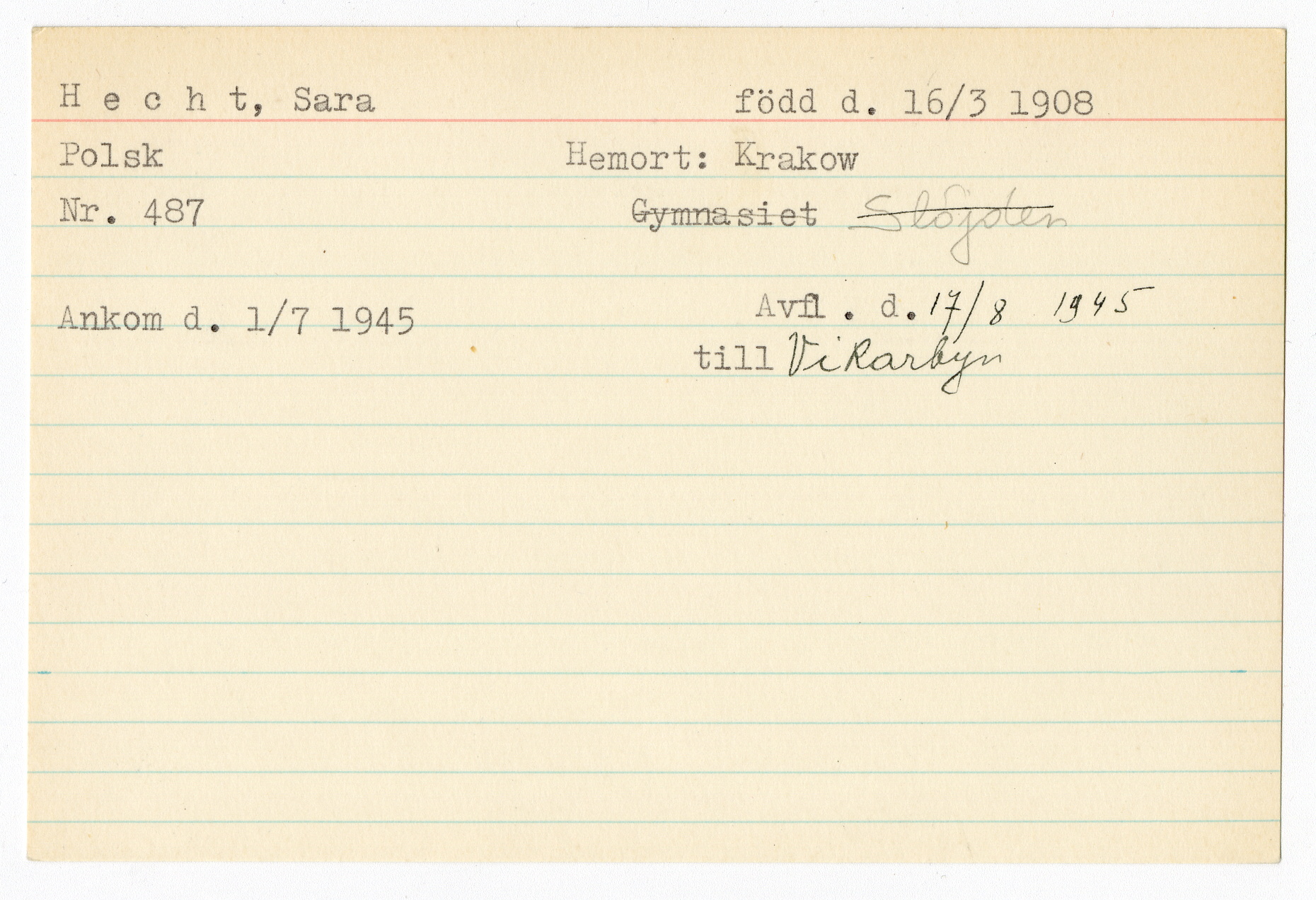 Ett skrivkort med patientuppgifter gällande Sara Hecht.