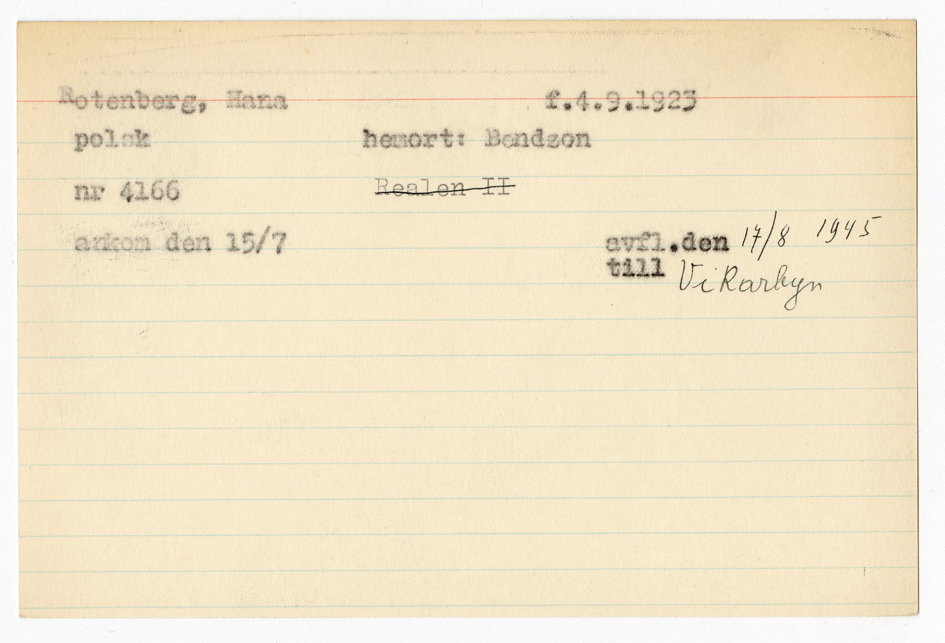 Ett skrivkort med patientuppgifter gällande Hana Rotenberg.