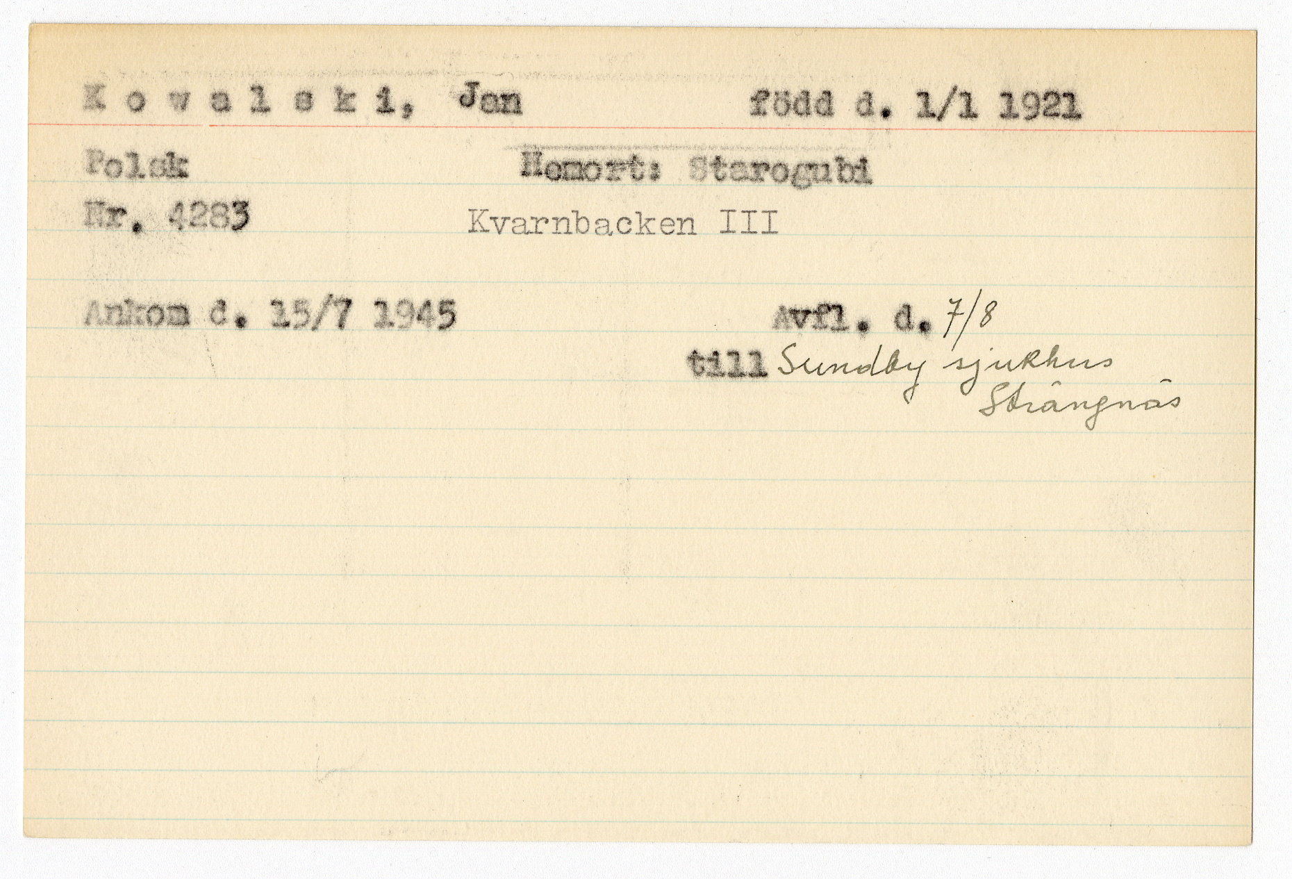 Registerkort Jan Kowalski