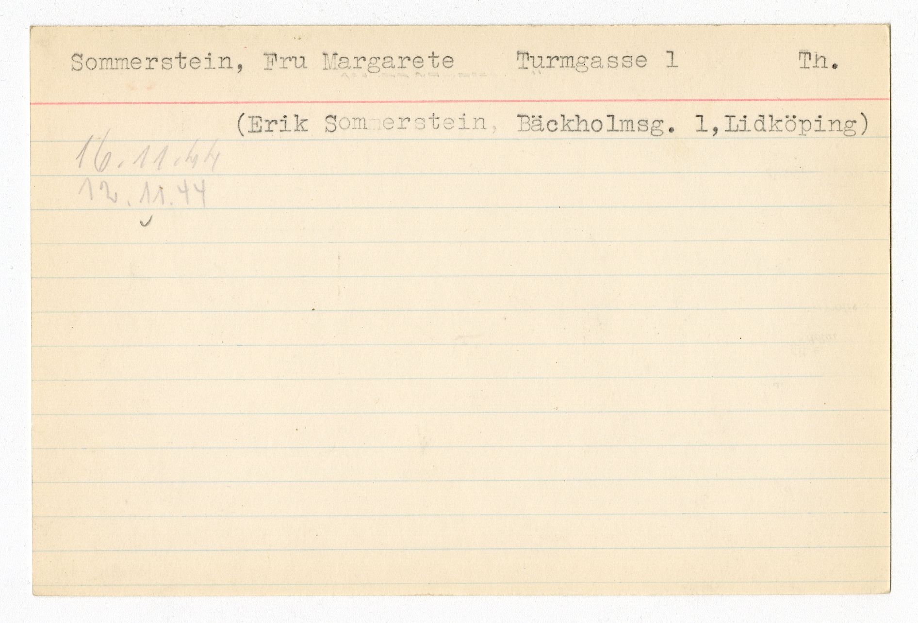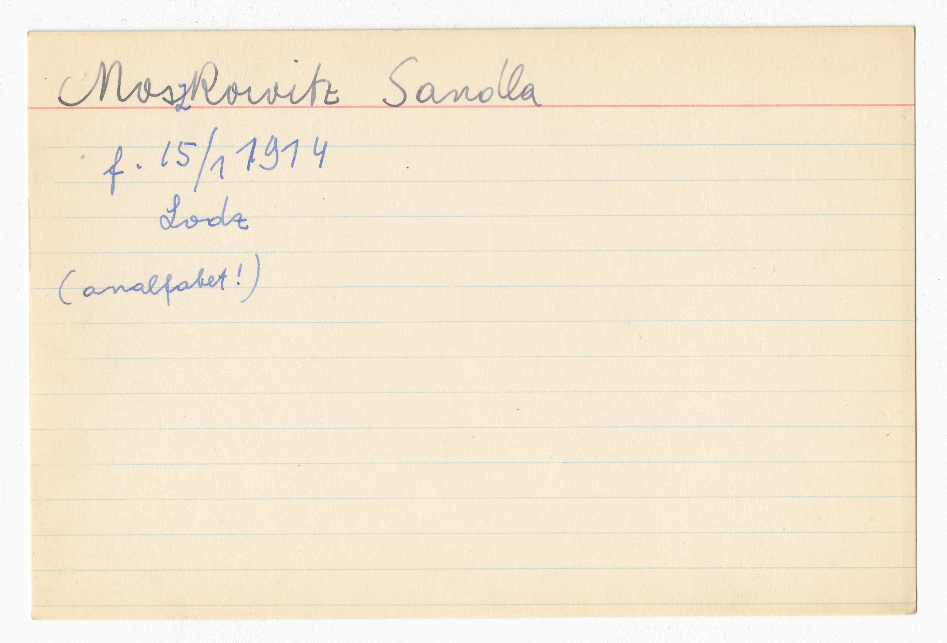 Registerkort Sandla Moszkowitz och Margarete Sommerstein