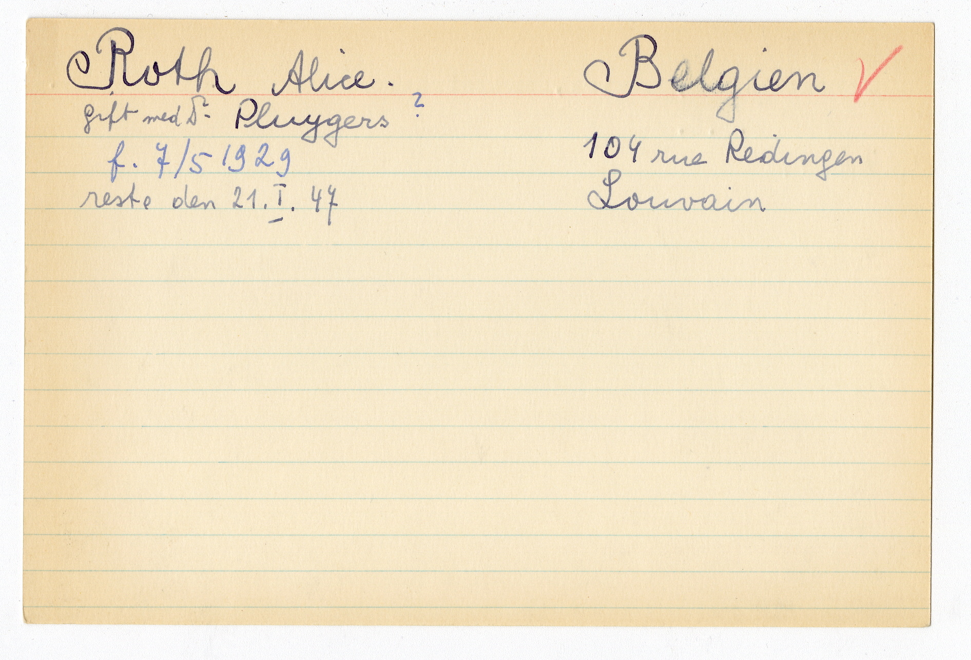 Registerkort Alice Roth och Claire Schragenheim