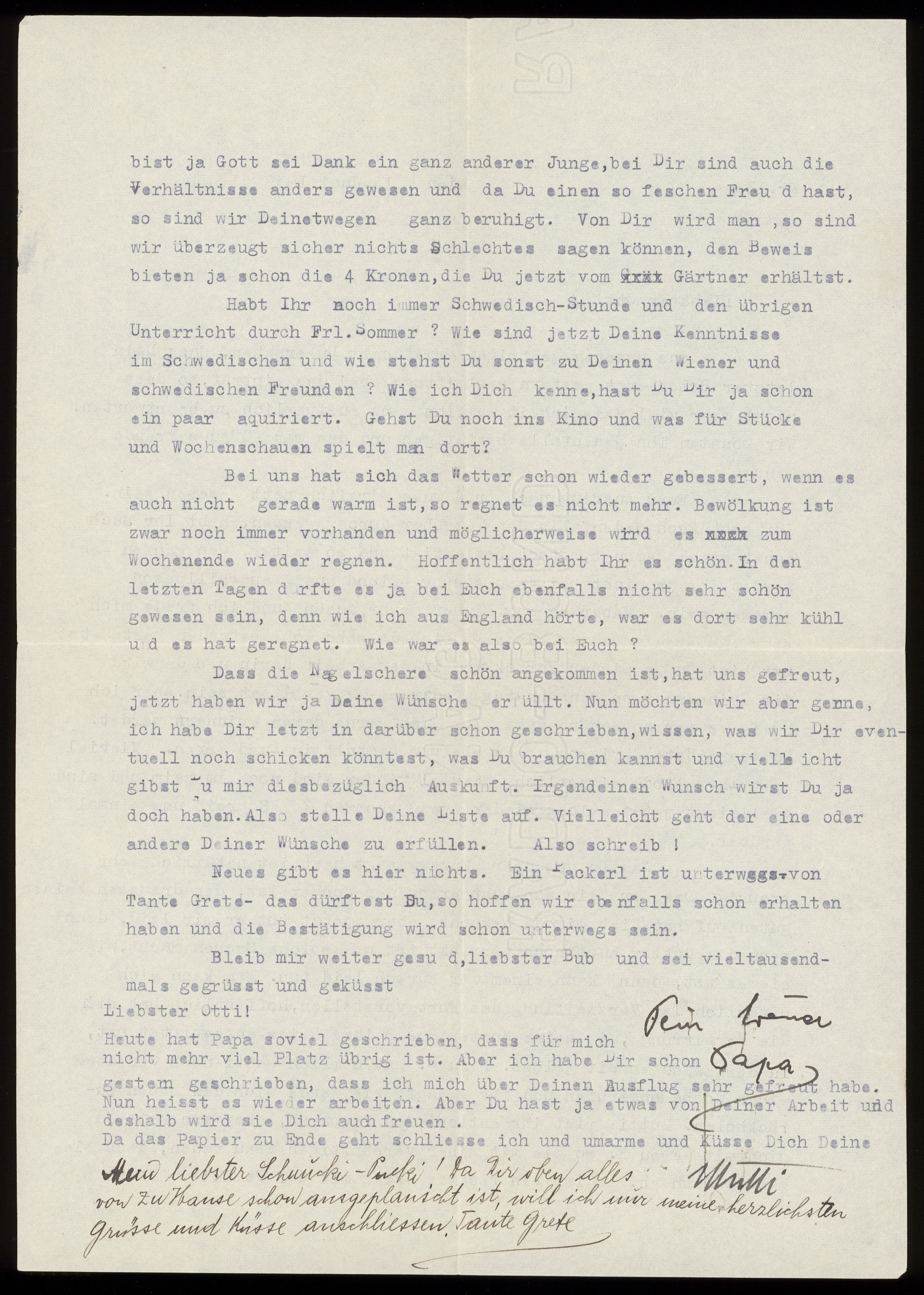 Maskinskrivet brev till Otto Ullman från föräldrarna Josef och Elise Ullmann och moster Grete Kollmann daterat 16 juni 1939 Wien.