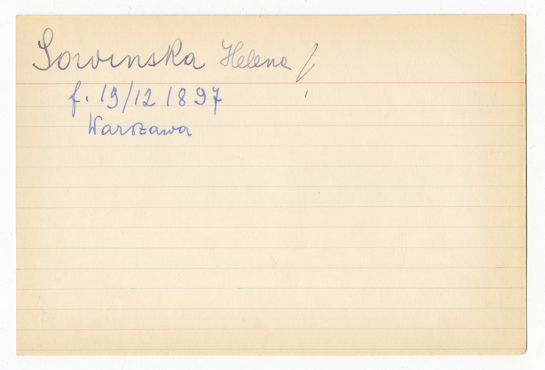 Registerkort Helene Sowinska och Marjem Schechner