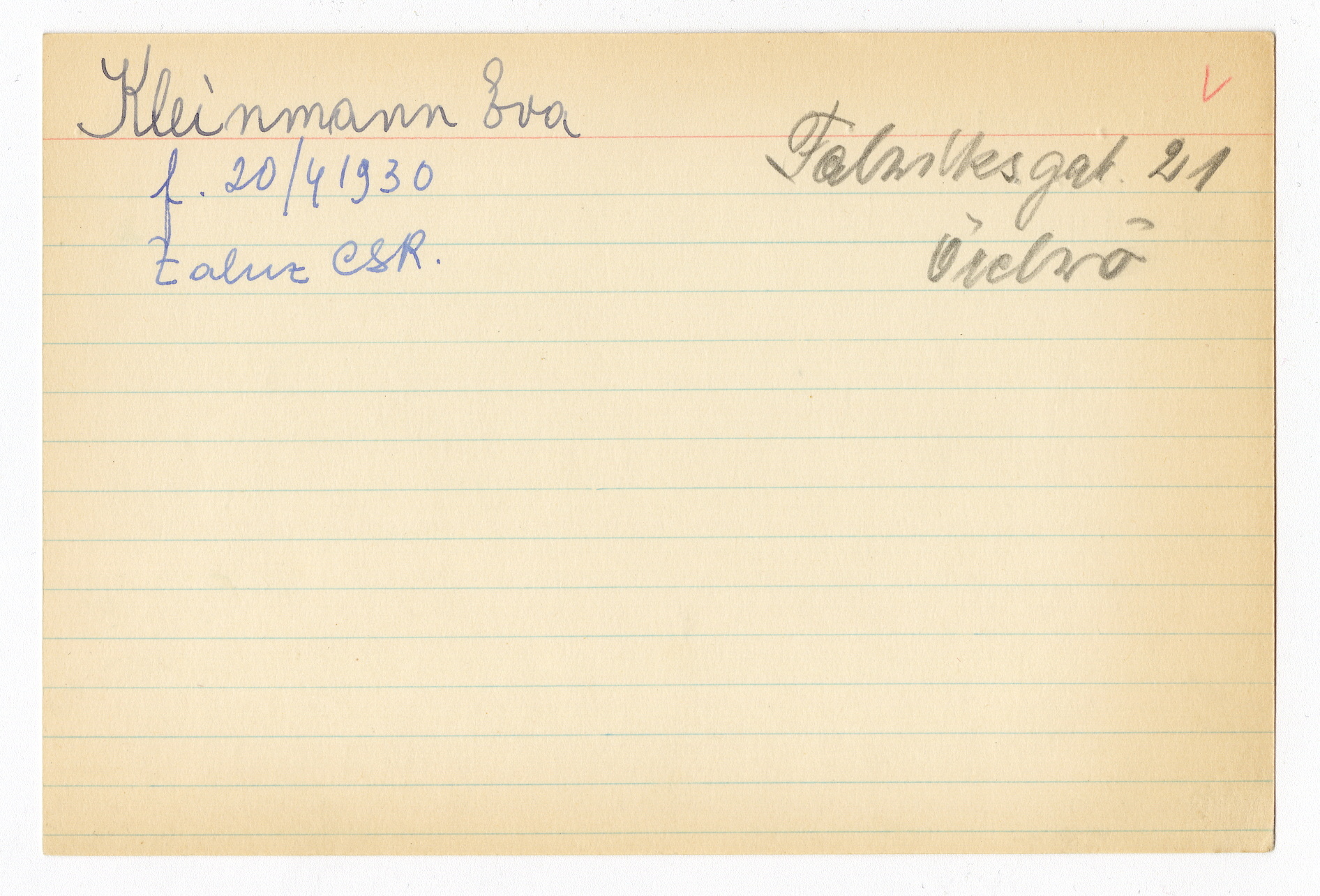 Registerkort Eva Kleinmann och Gabriel Steif