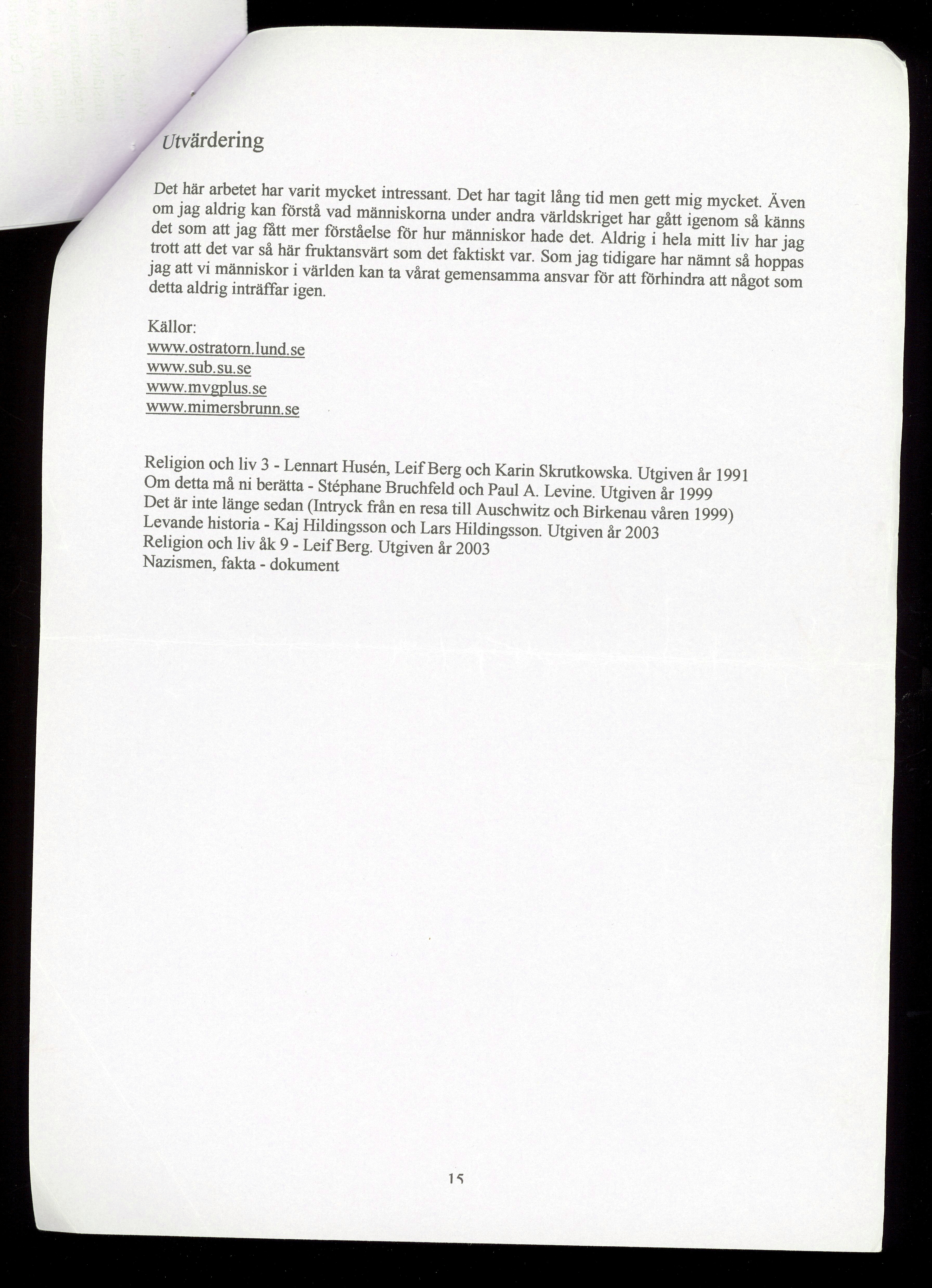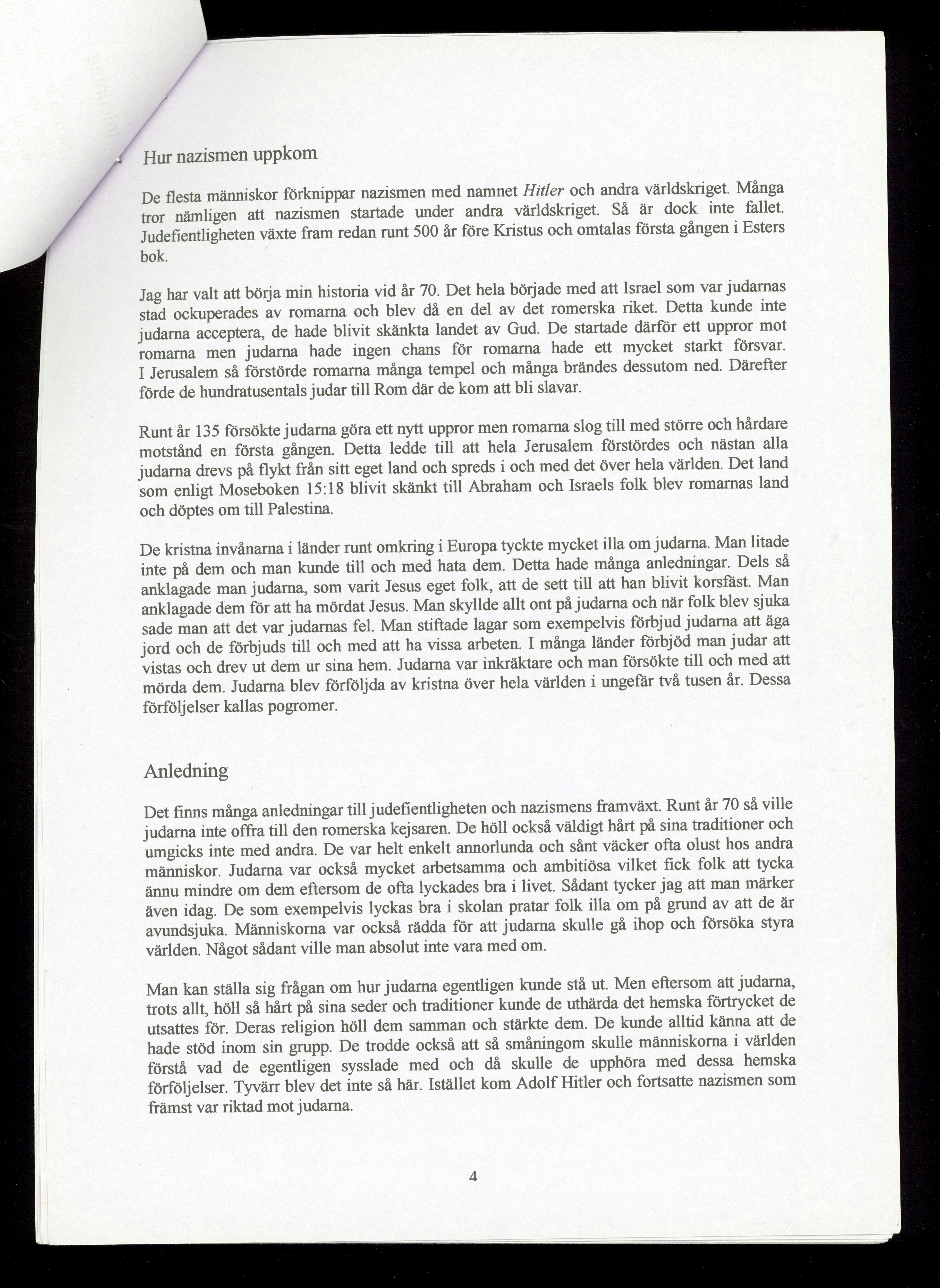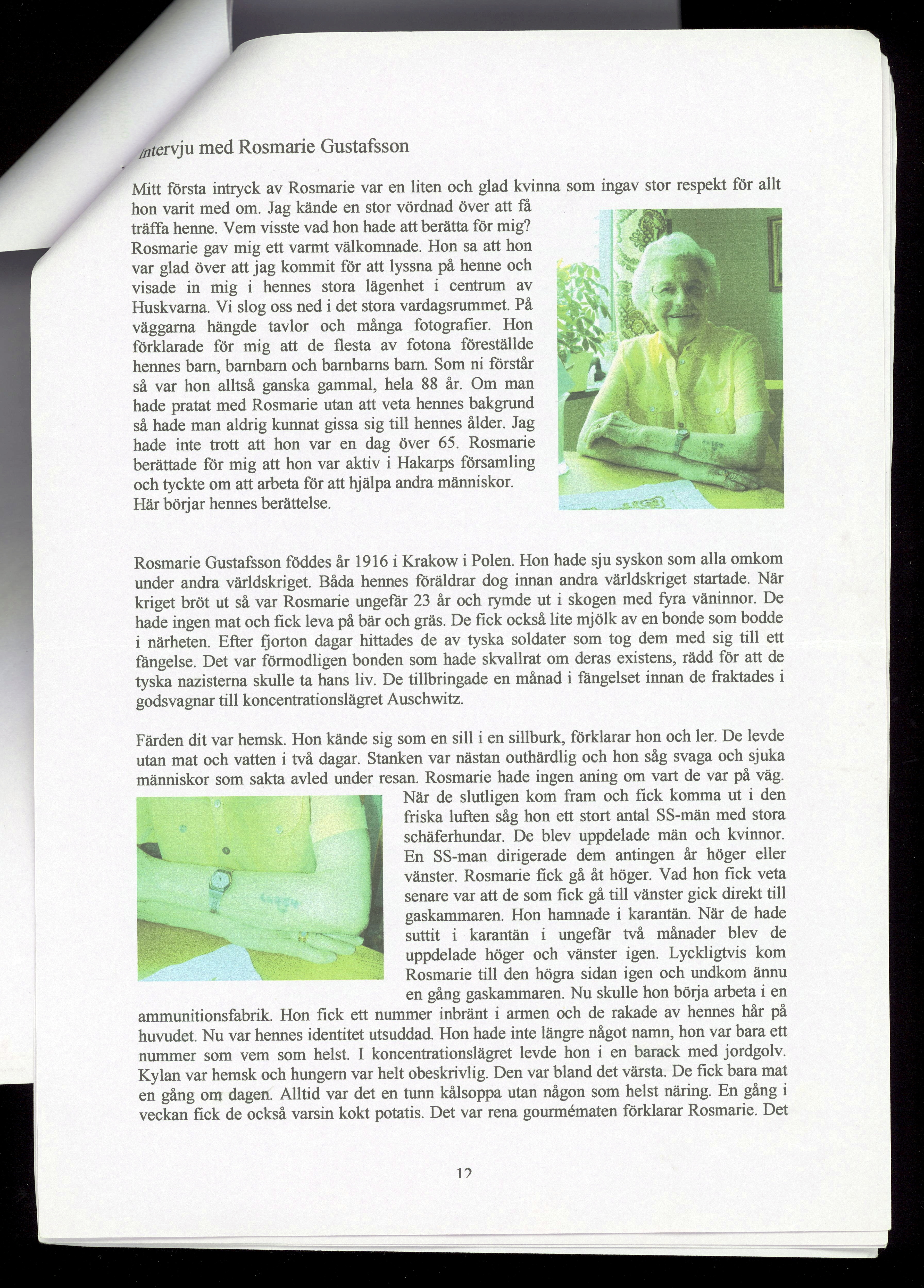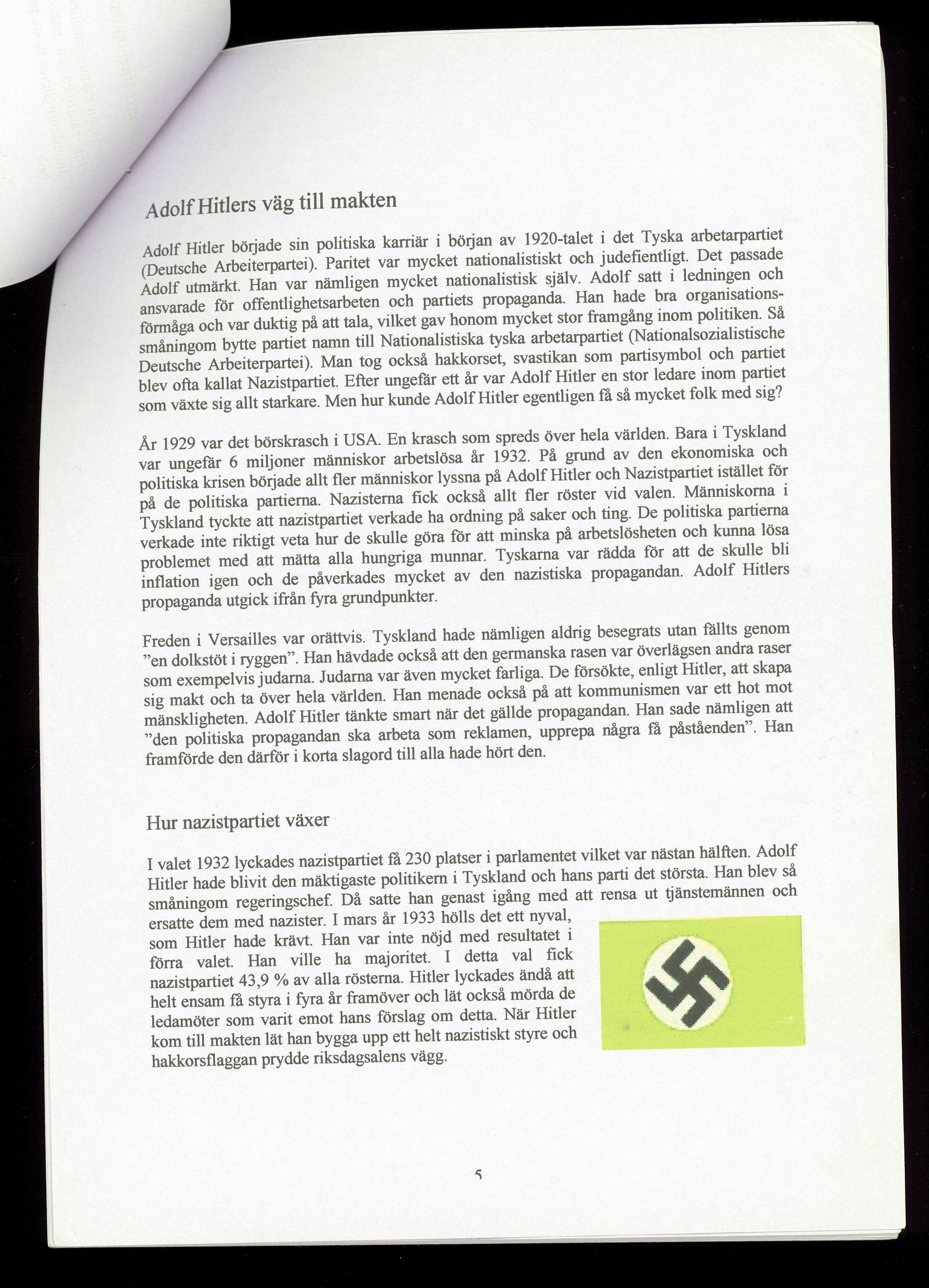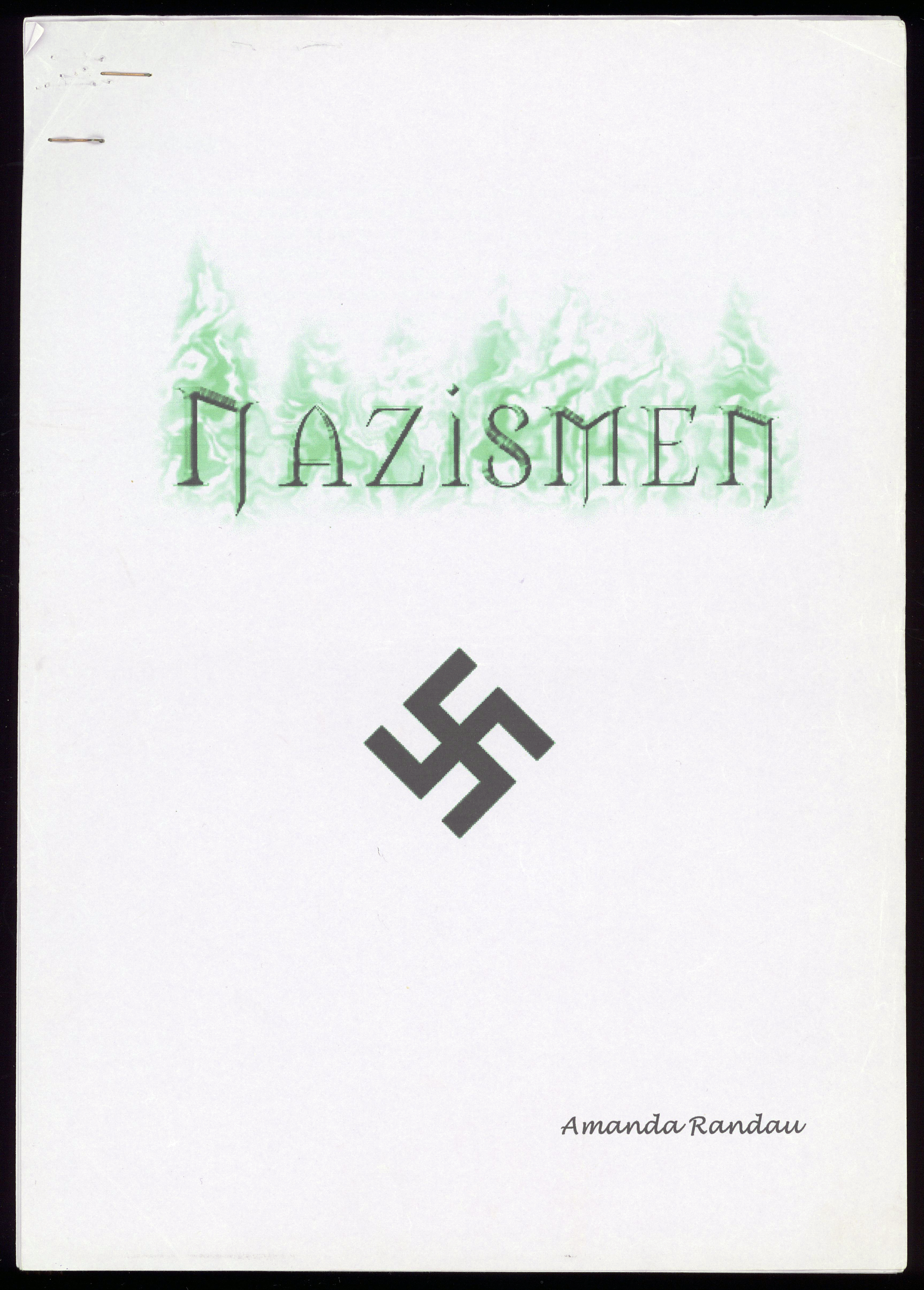 Specialarbete, gymnasiet. Nazismen av Amanda Randau. Innehåller intervju med Rosa Gustafsson.