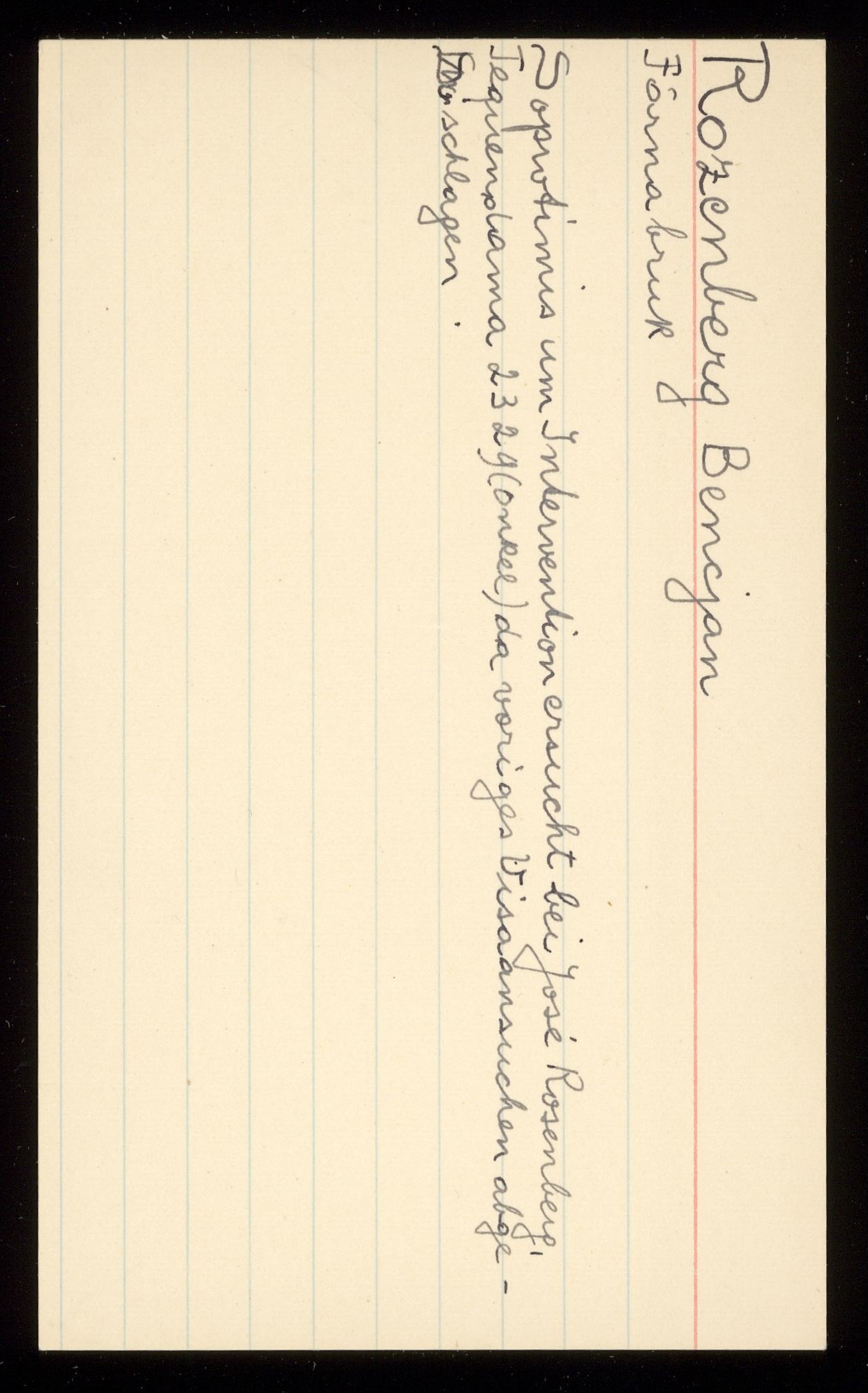 Ett skrivkort med patientuppgifter gällande Bencjan Rozenberg.