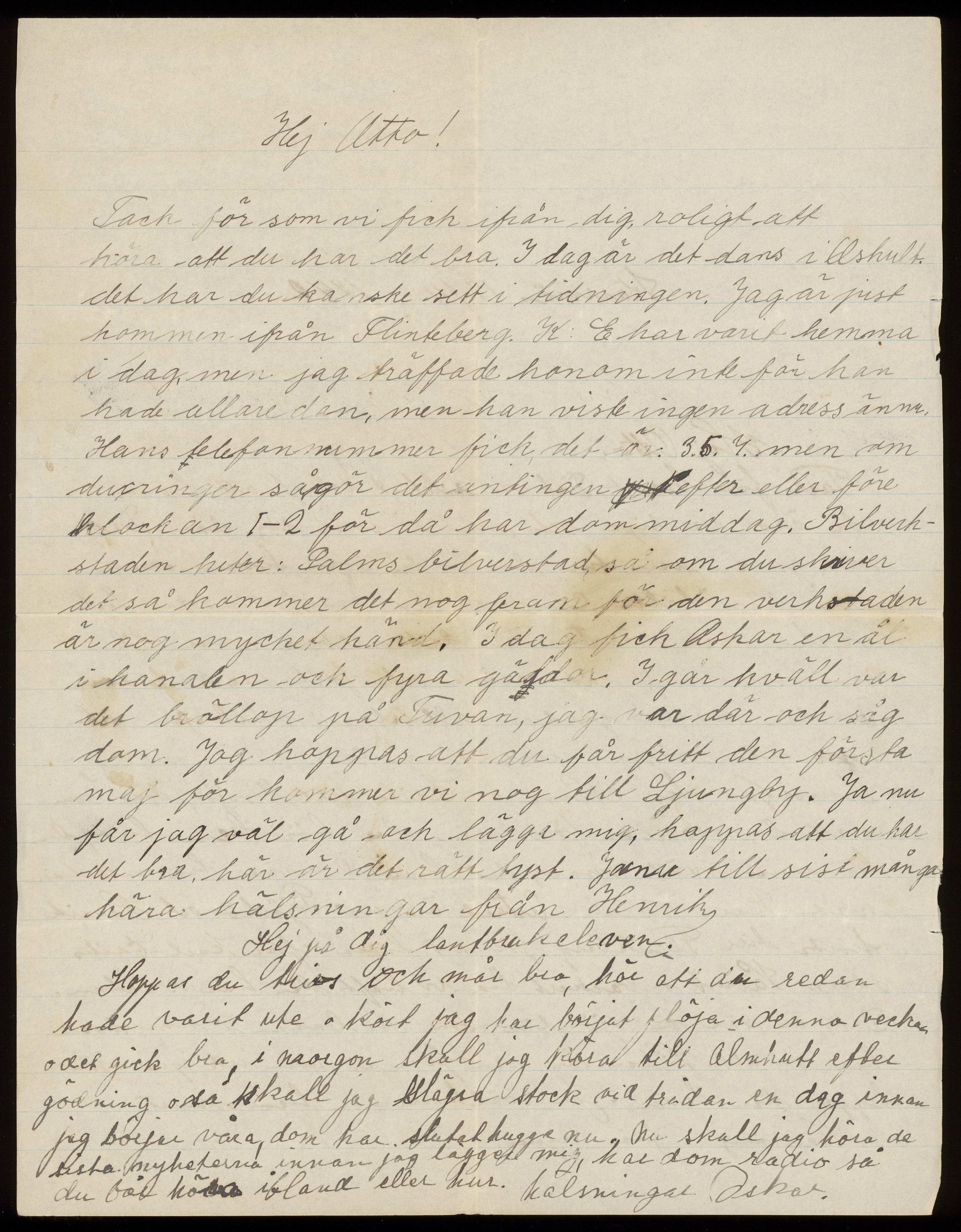 Brev till Otto Ullman från vännerna Agnes, Henrik och Oskar daterat 1942.
