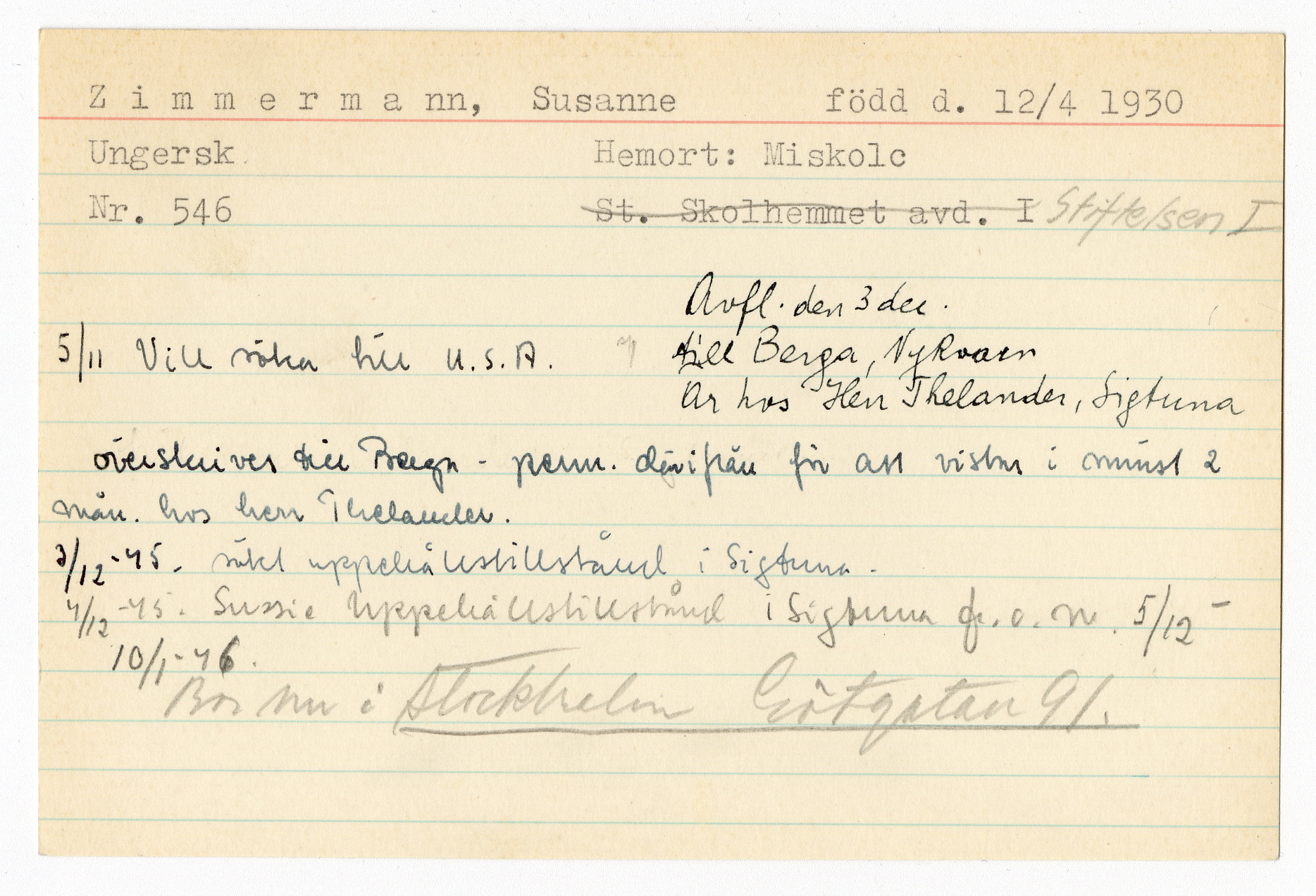 Ett skrivkort med patientuppgifter gällande Susanne Zimmermann.