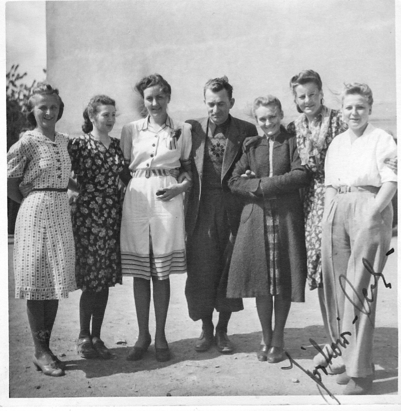 Gruppfotografi från karantänlägret vid Onslunda skola. Wanda är andra från höger i bild. Enligt Wandas dotter kan Wanda eventuellt ha skickat denna bild till Józef.