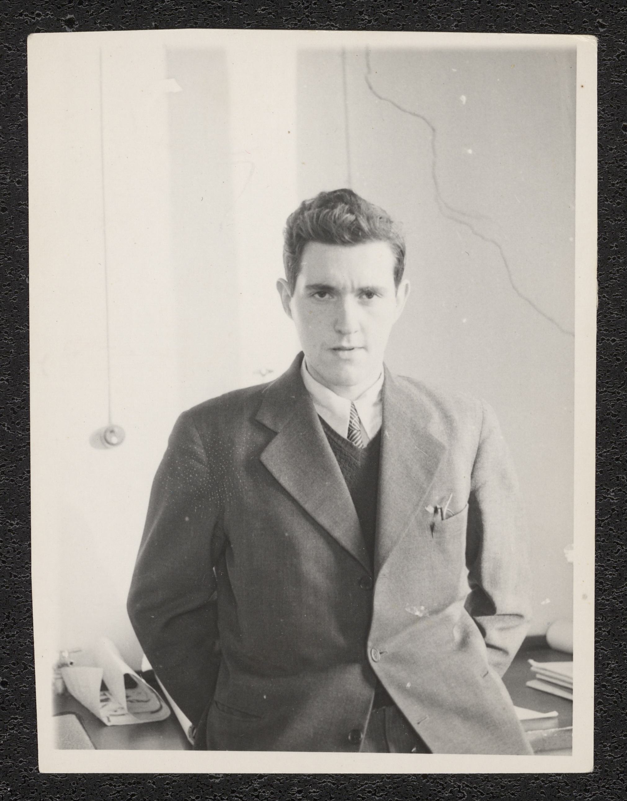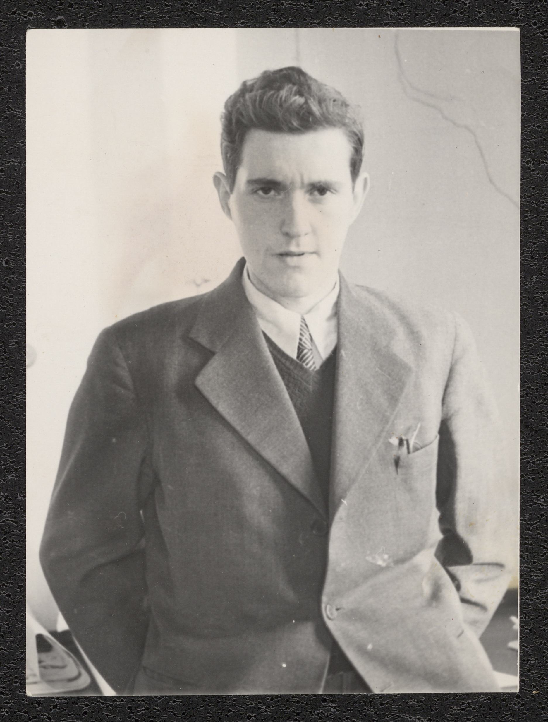 Porträtt av Georg Witt iförd kostym. På baksidan finns årtalet 1955.
