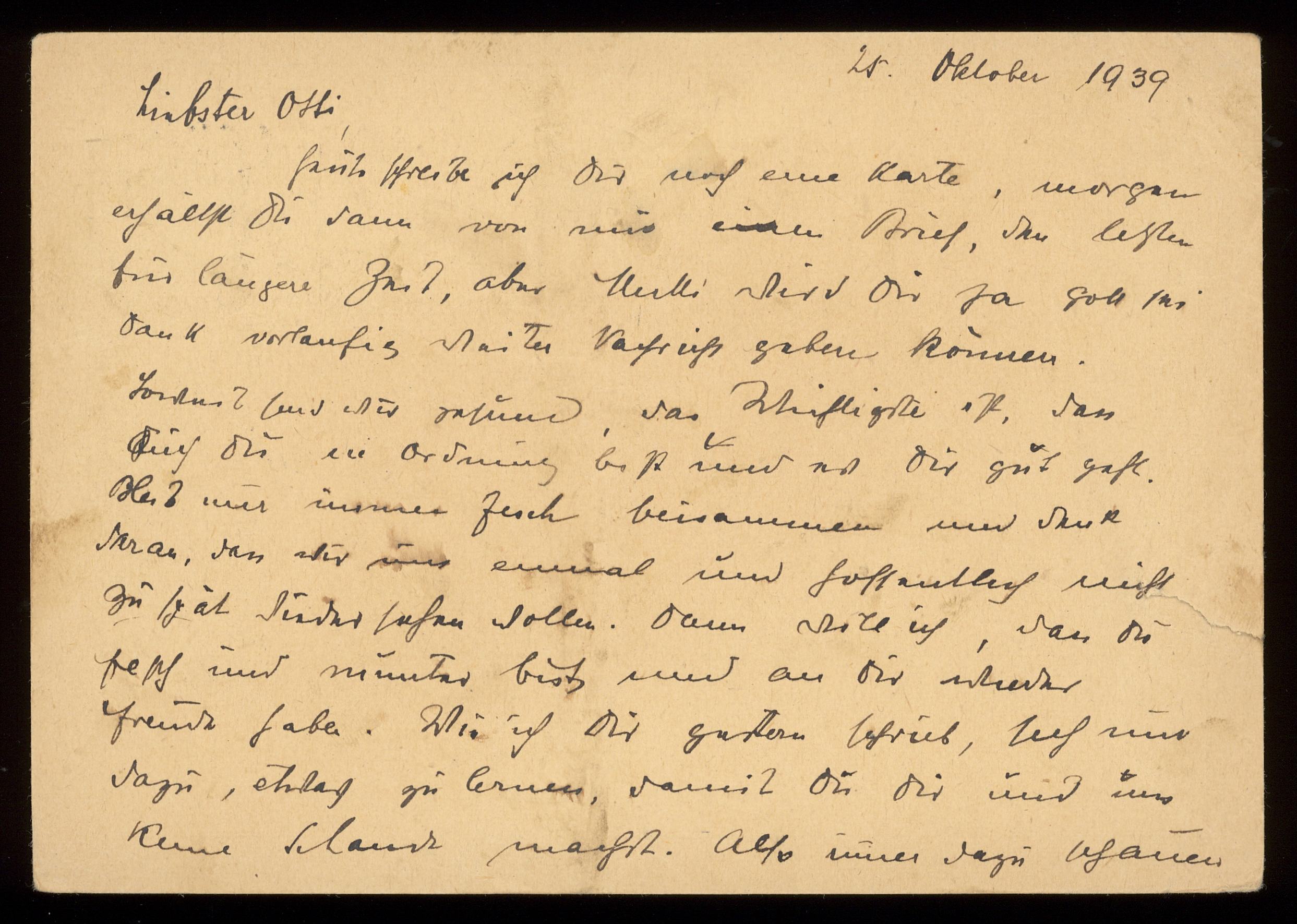 Brev till Otto Ullman från föräldrarna Josef och Elise Ullmann daterat 25 oktober 1939 Wien.