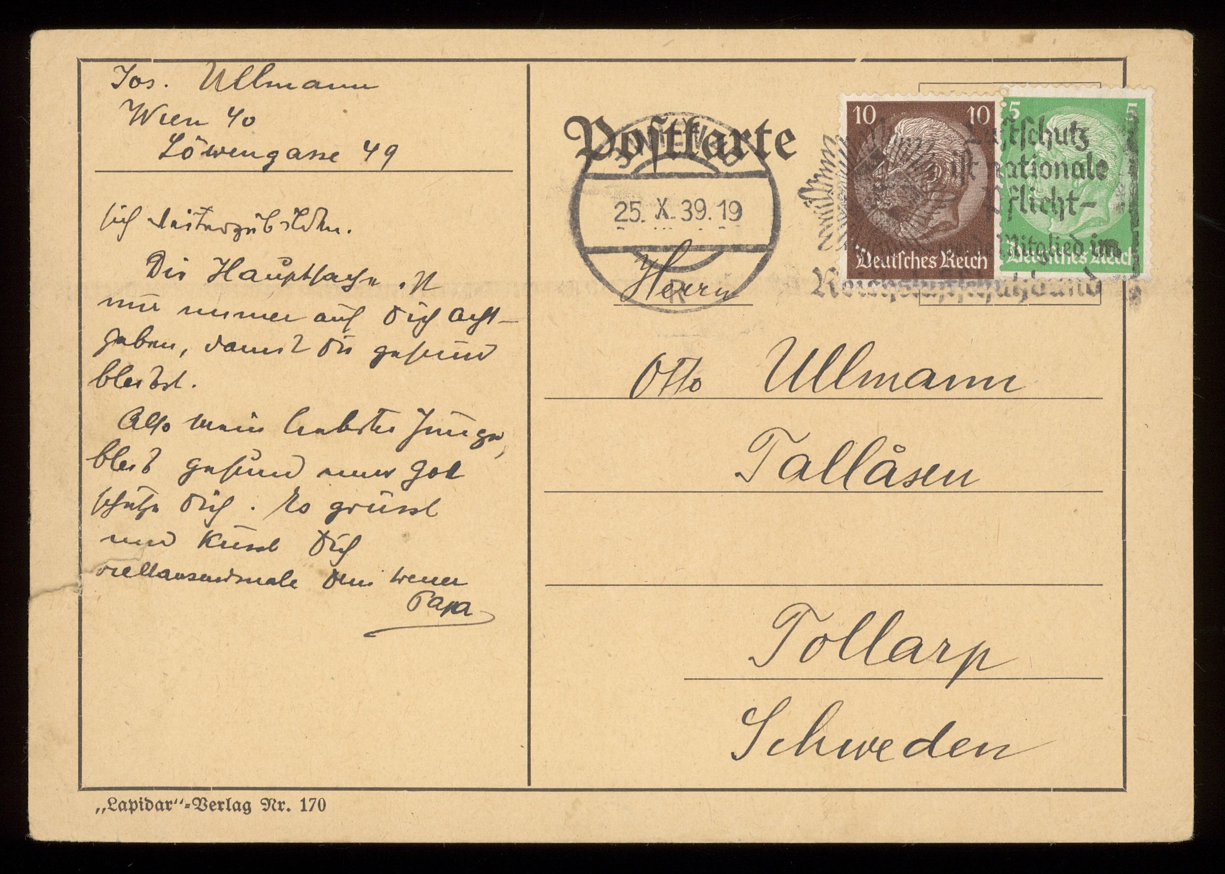 Brev från Elise och Josef Ullmann 1939-10-25