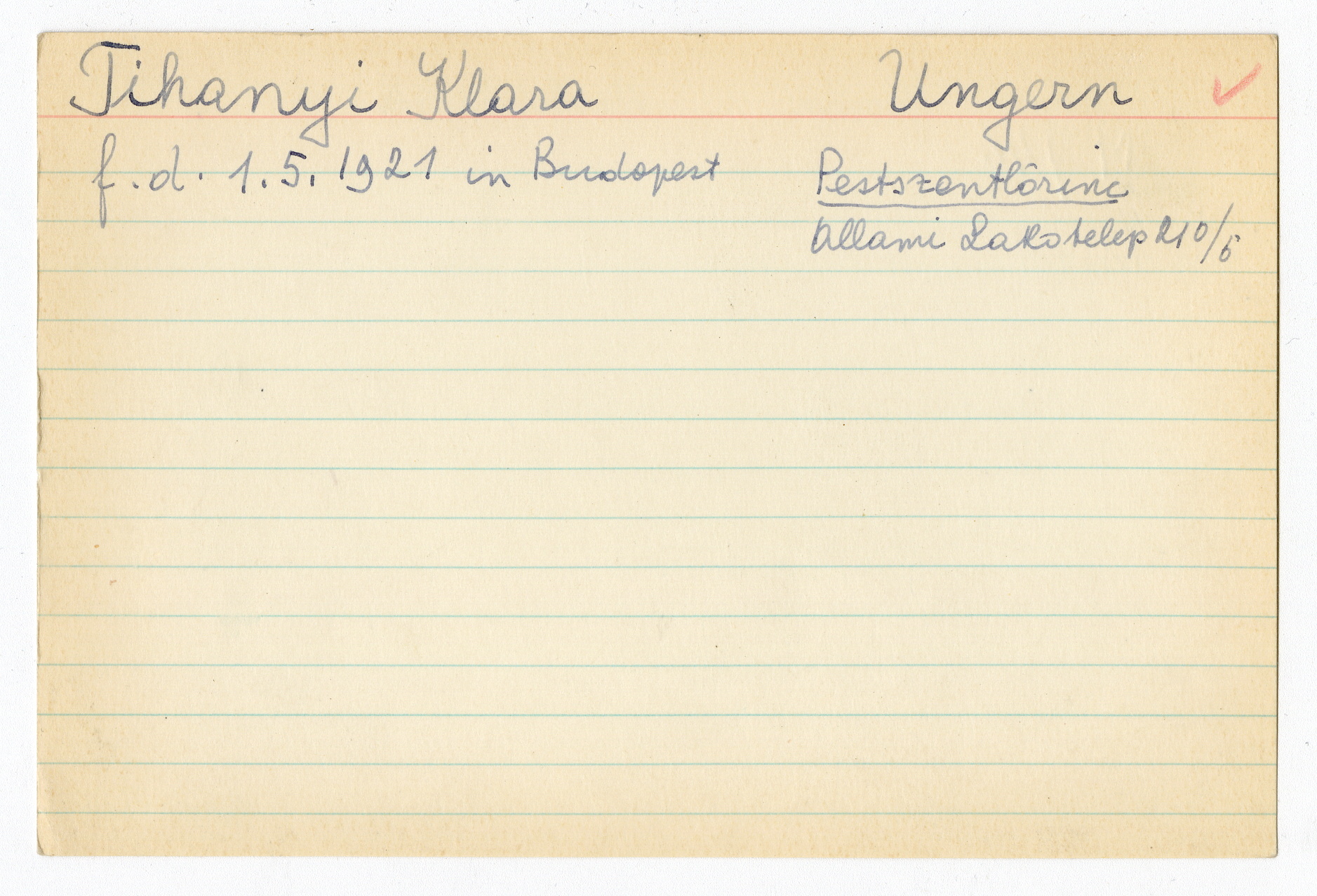 Registerkort Klara Tihanyi och Irma Stecher
