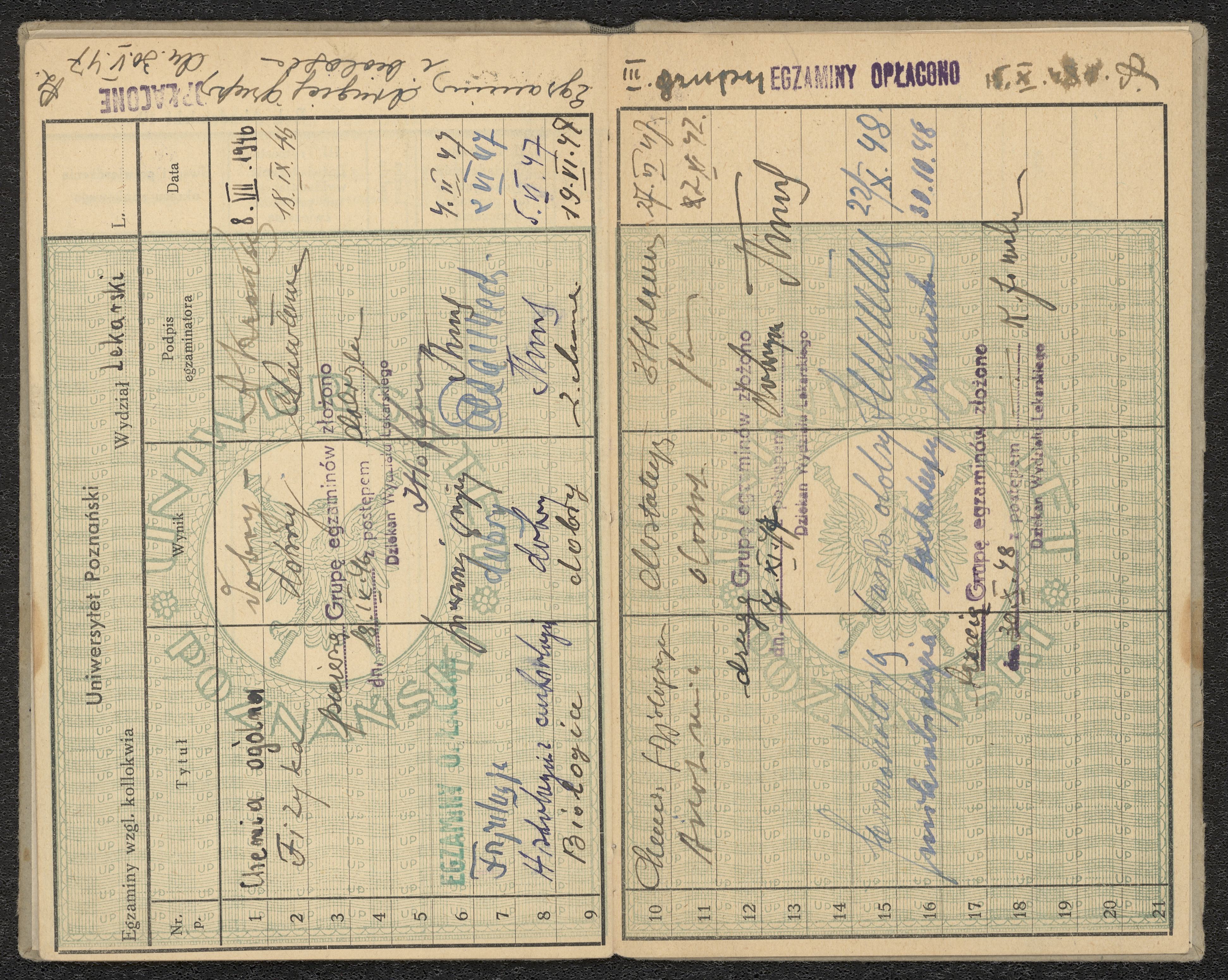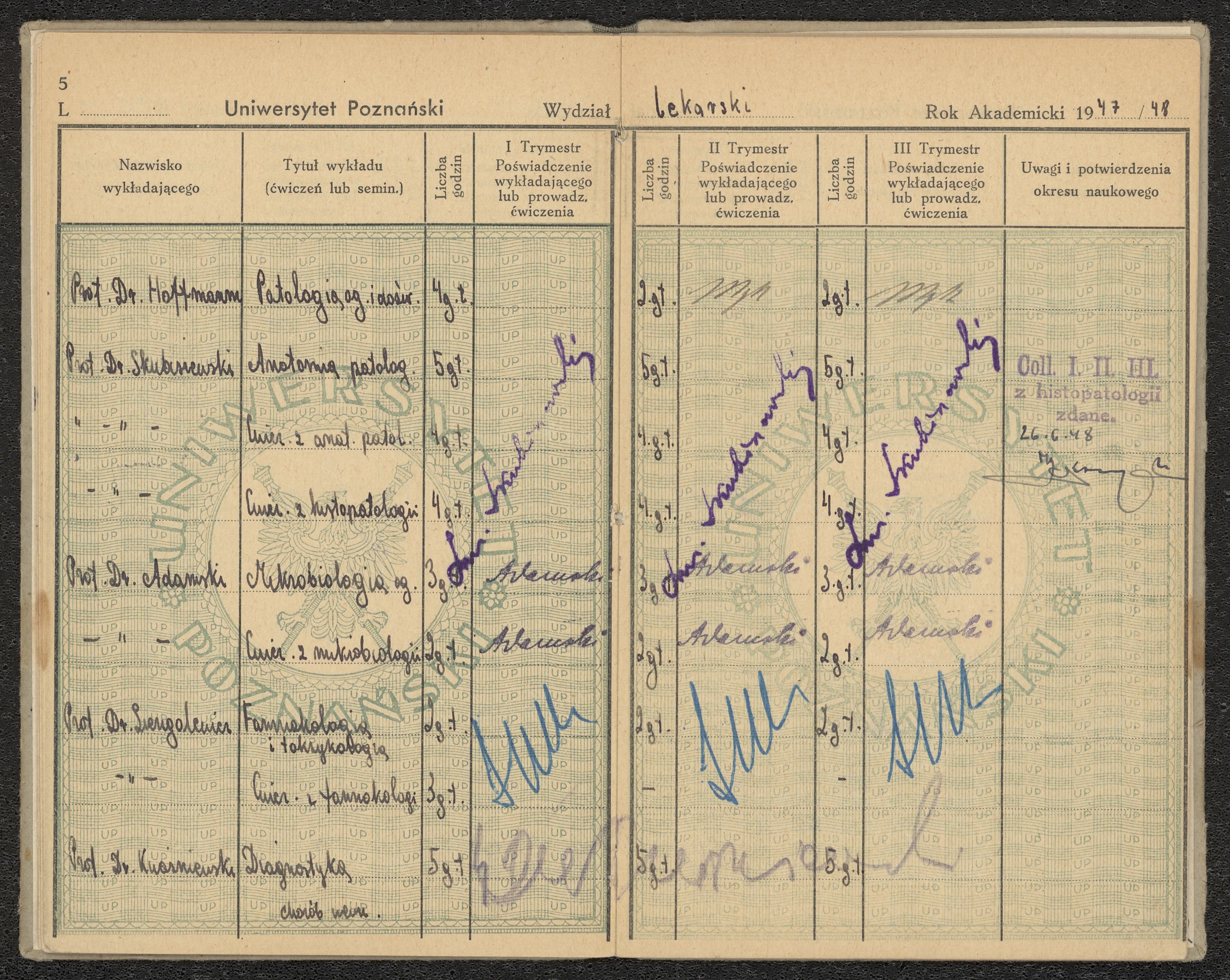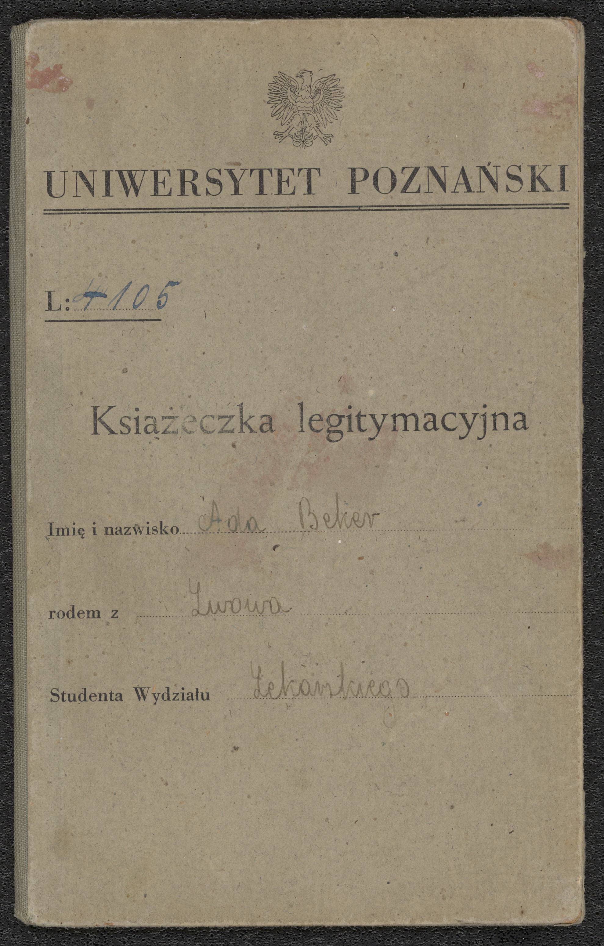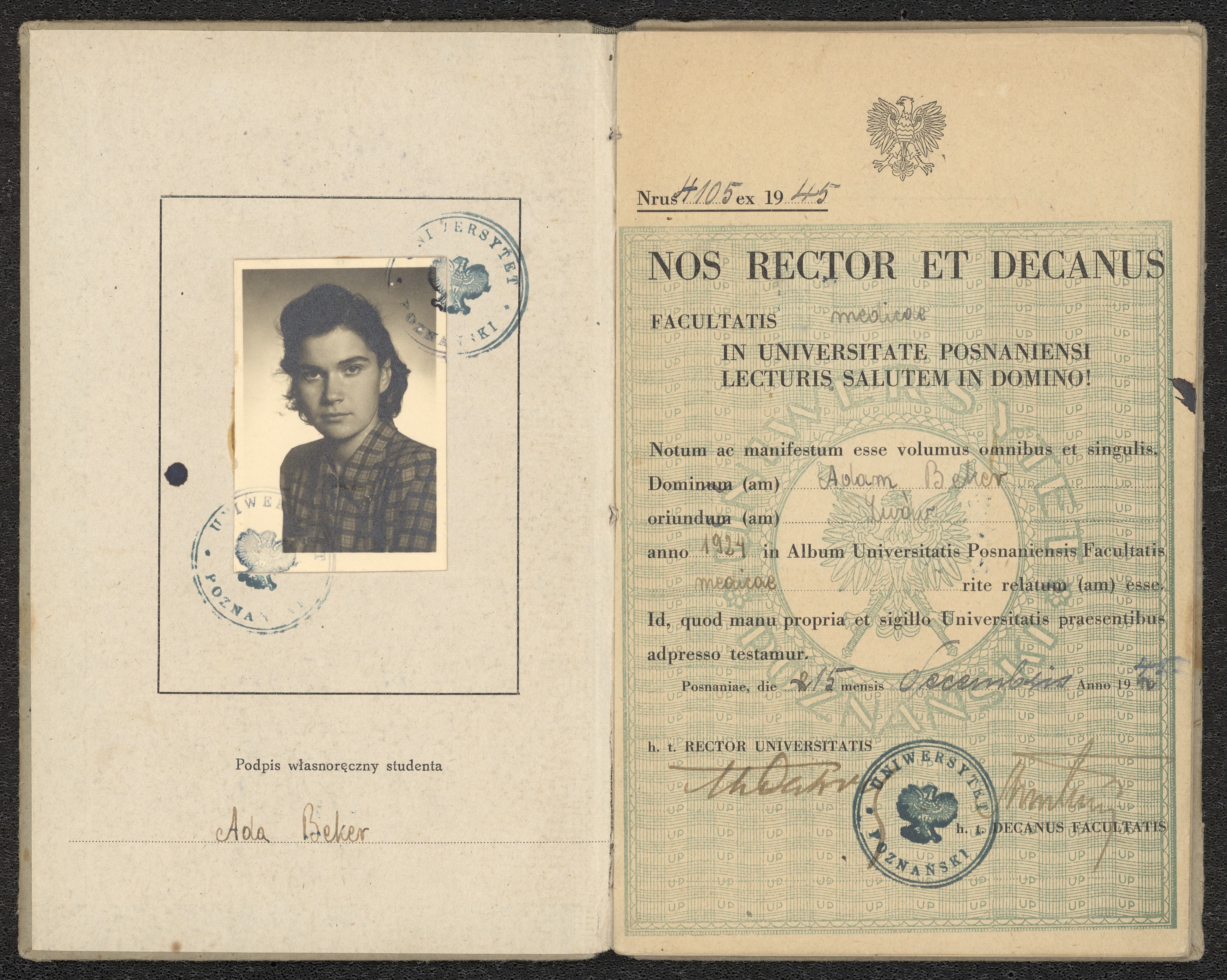 Betygsbok från Universitetet i Poznan för Ada Becker.