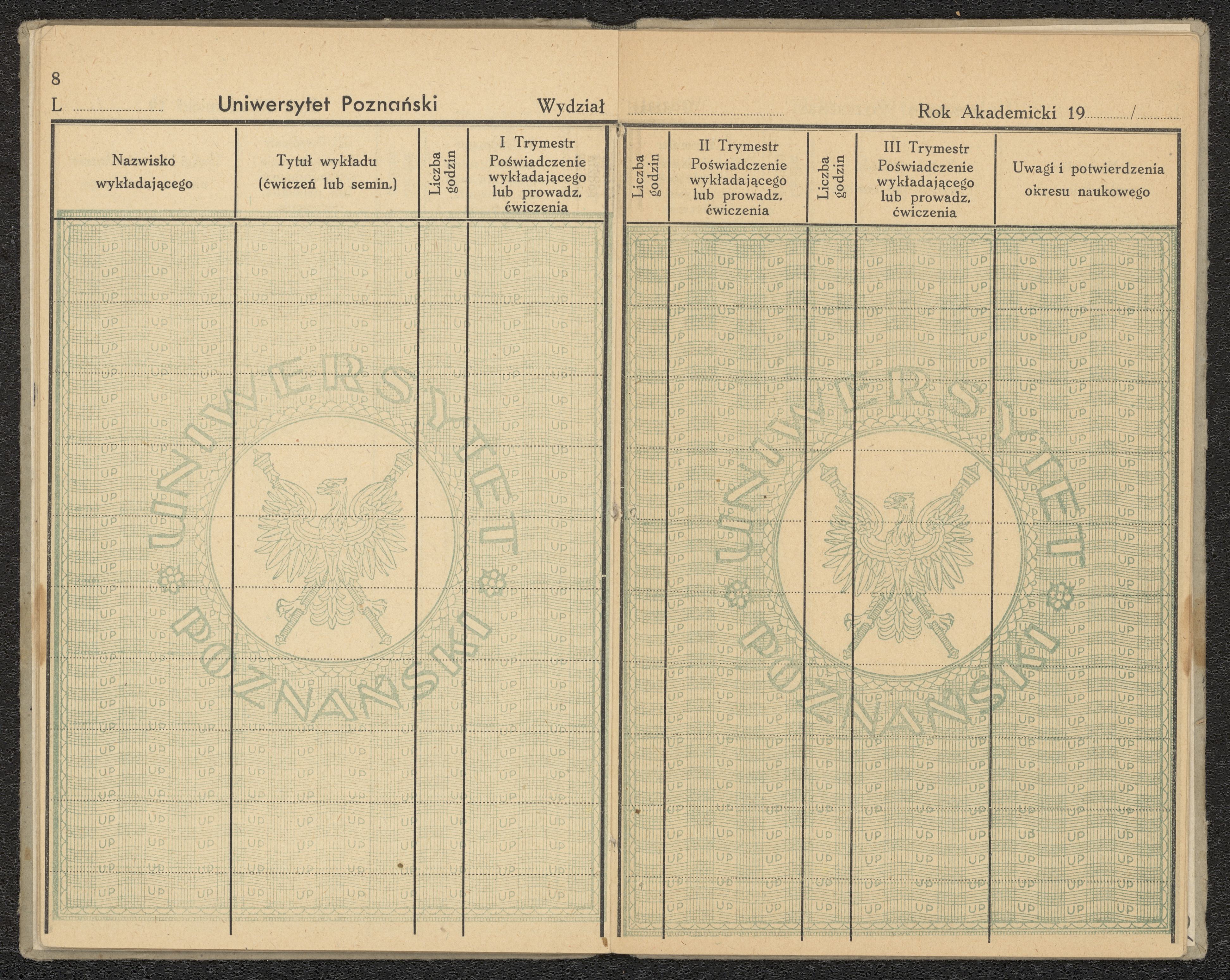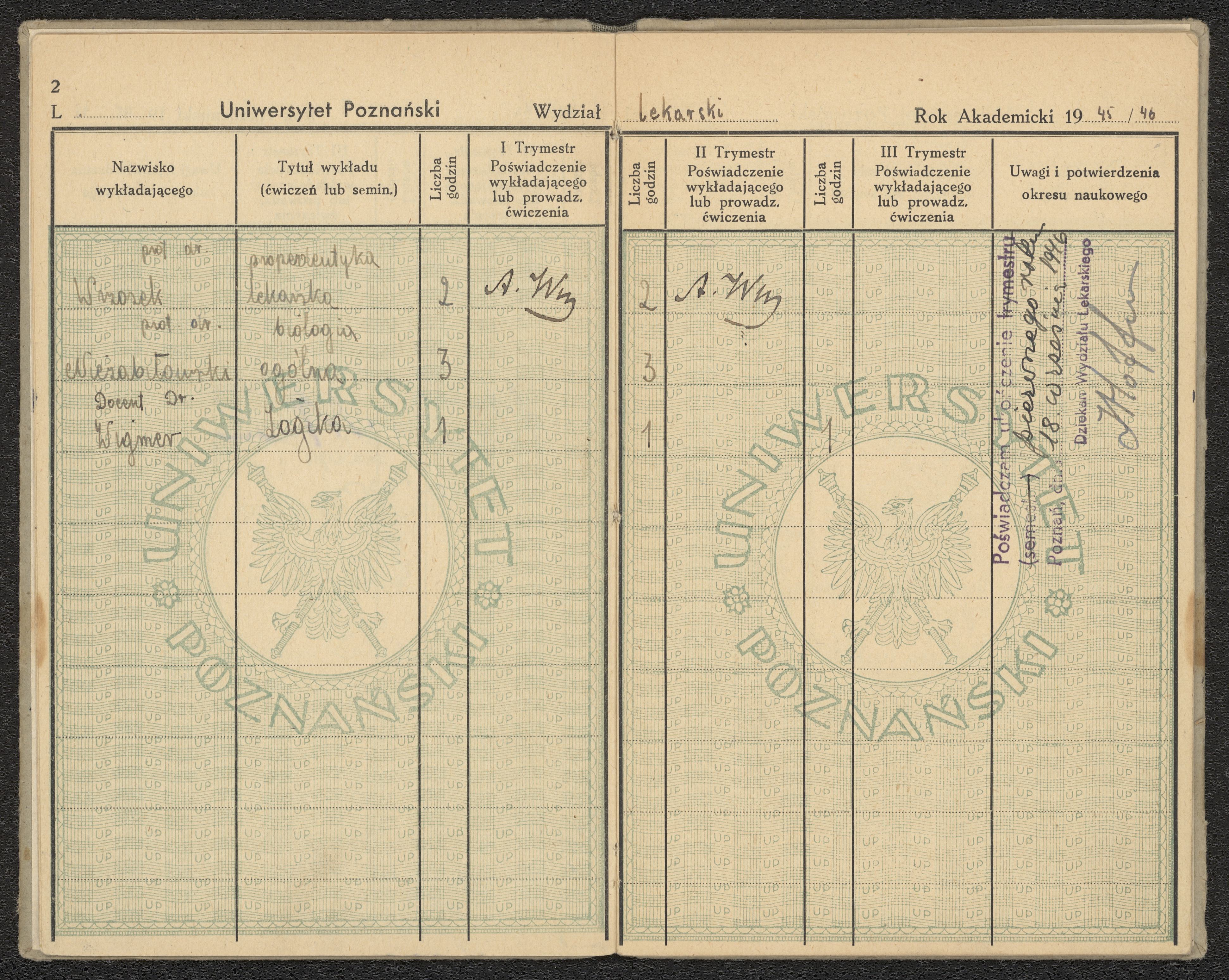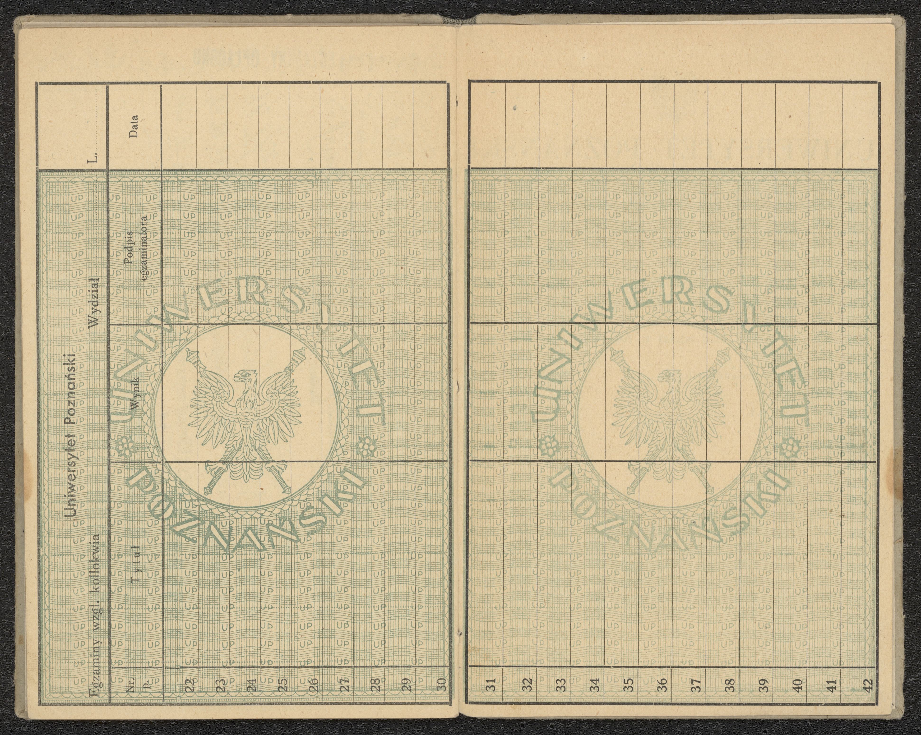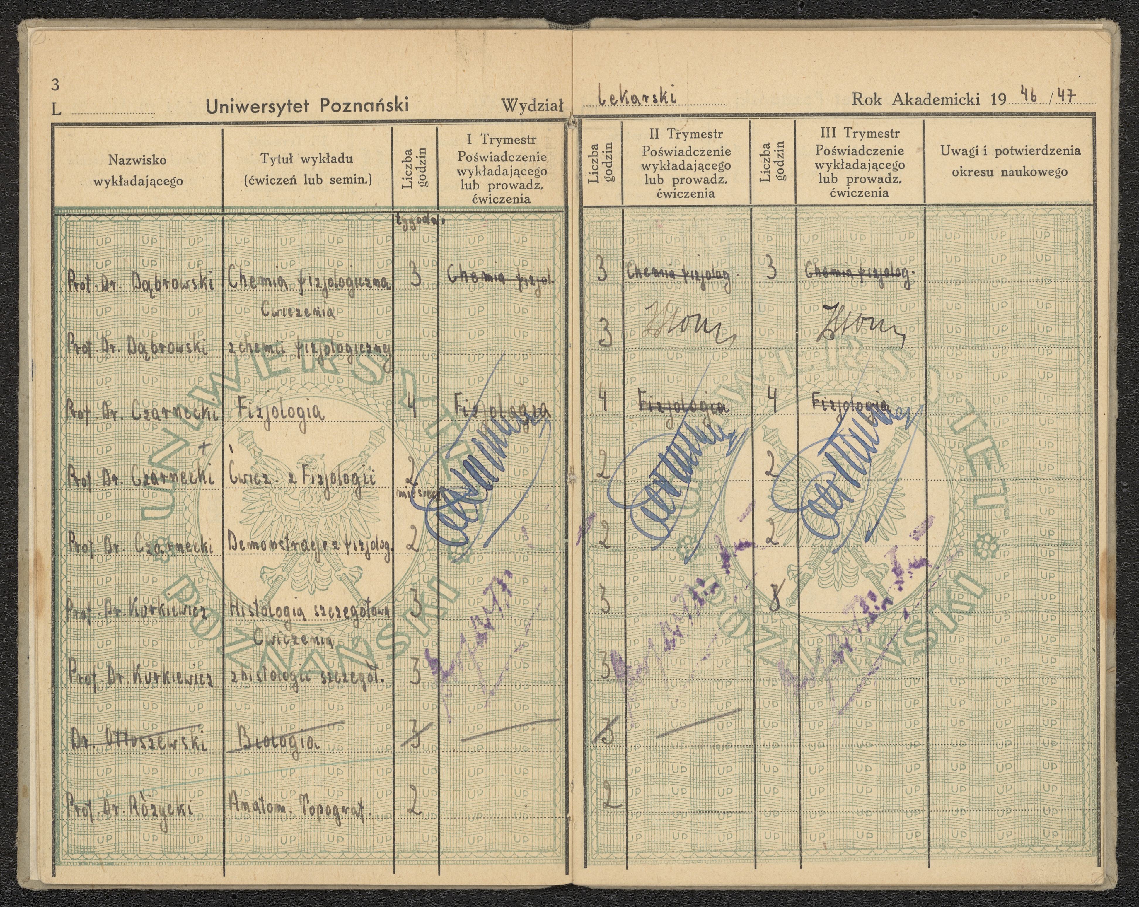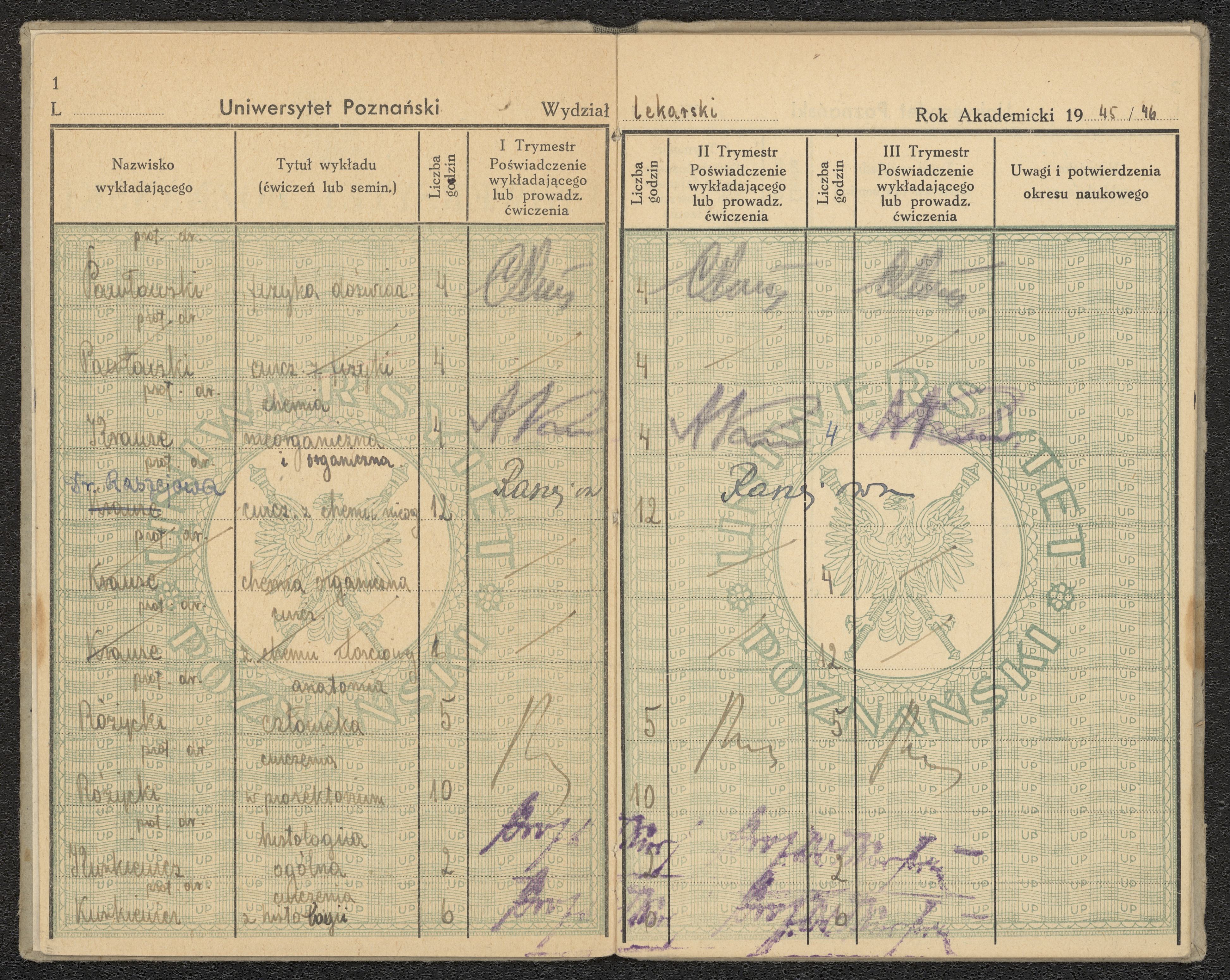 Betygsbok från Universitetet i Poznan för Ada Becker.