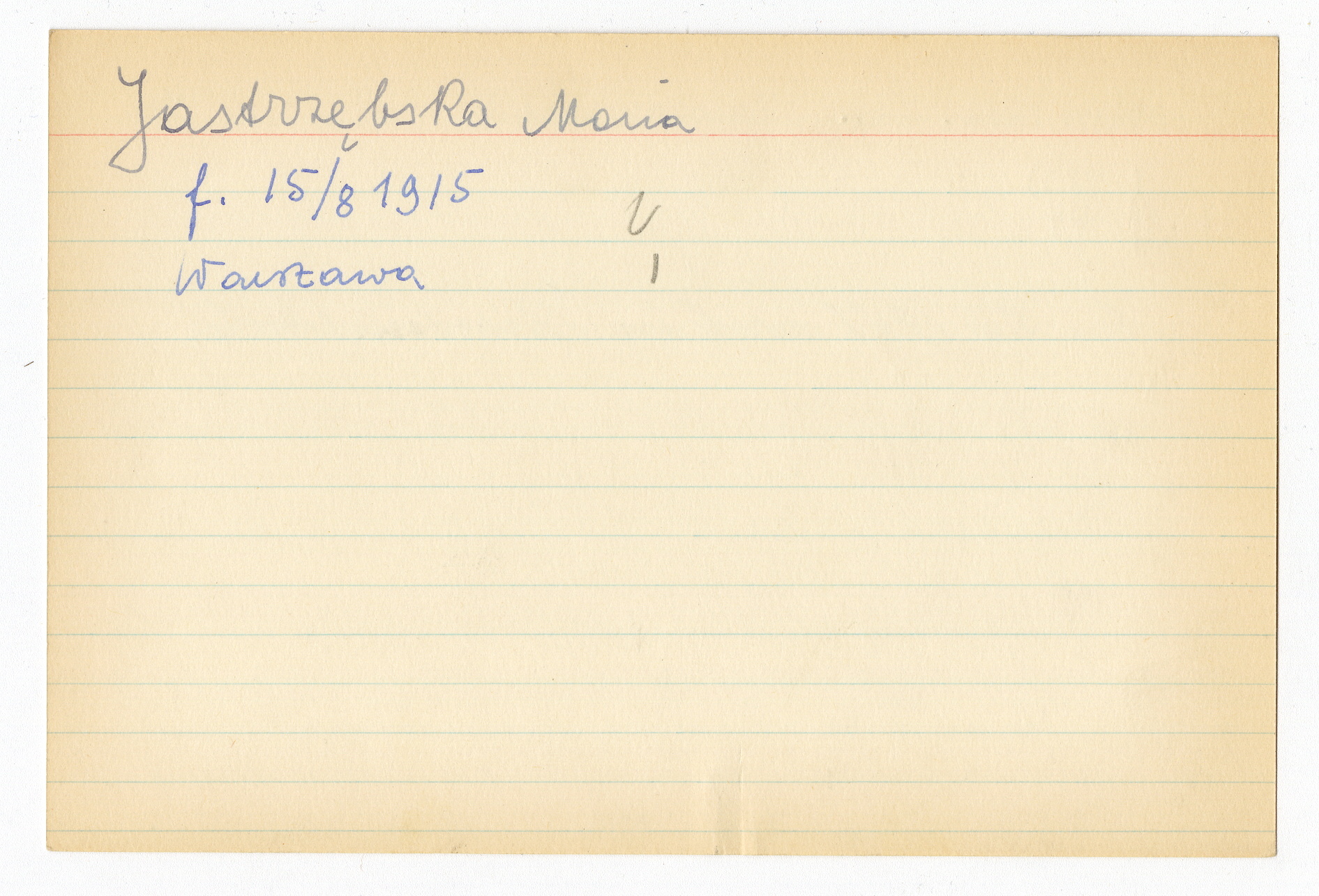 Ett skrivkort med patientuppgifter gällande Maria Jastrebska. På baksidan uppgifter om matpaket till Karl Stern i Theresienstadt.