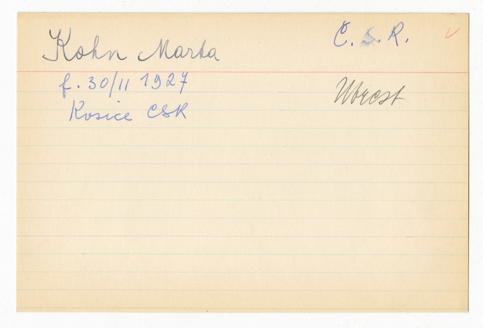 Registerkort Marta Kohn och Thomas Sobotka