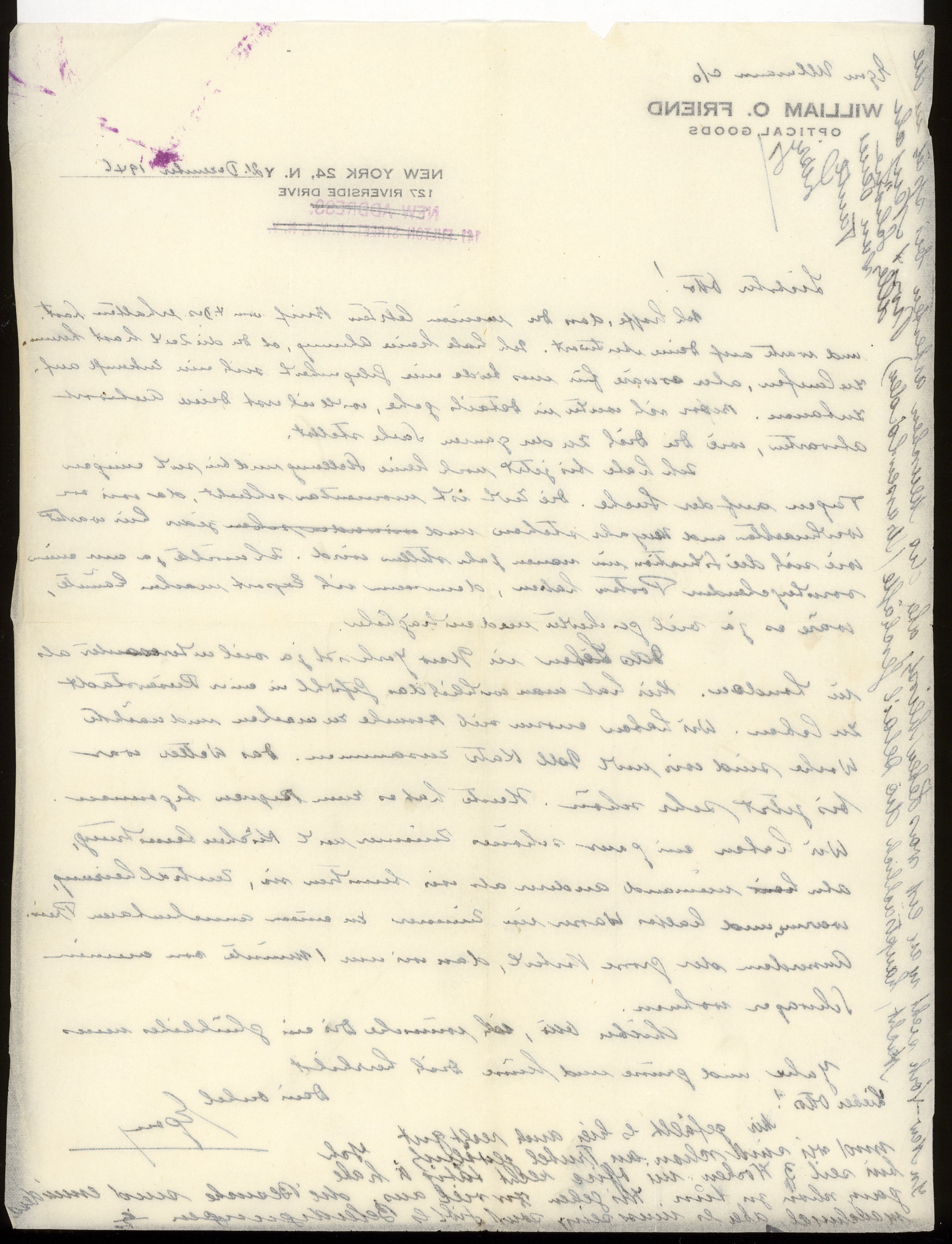 Brev till Otto Ullman från farbror Egon Ullmann och faster Alice "Lizzy" Ullmann daterat 21 december 1946 New York.
