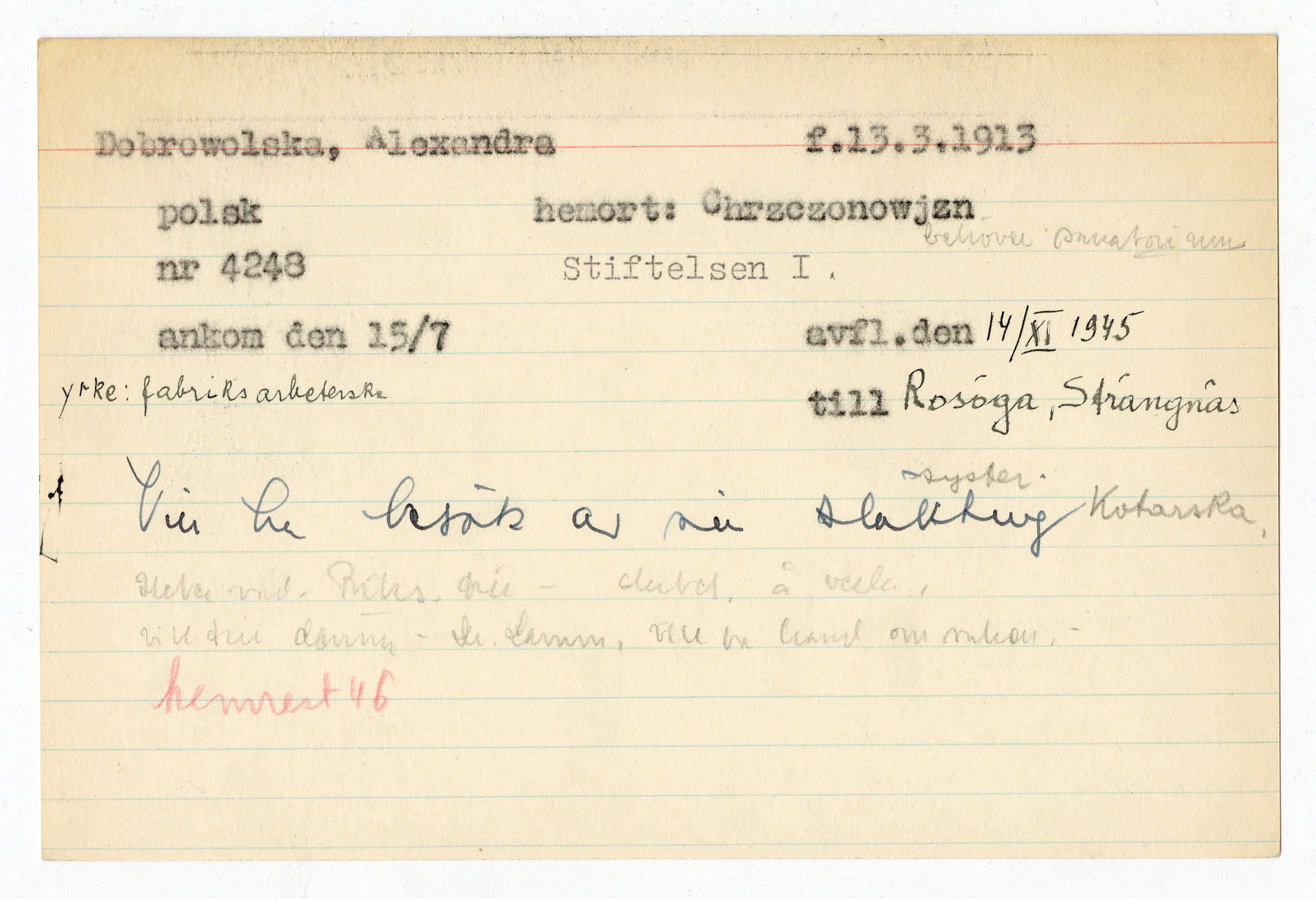 Registerkort Alexandra Dobrowolska