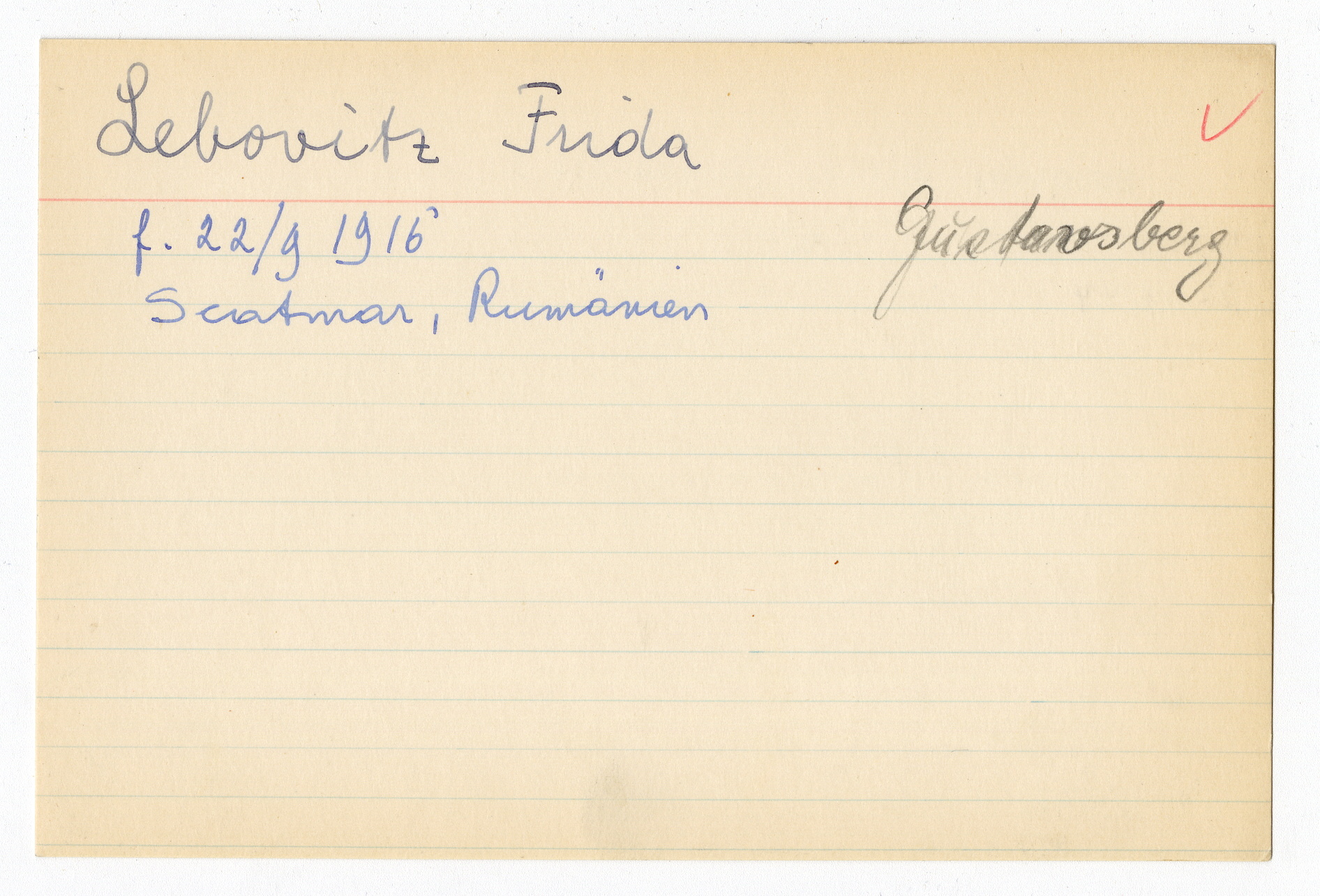Registerkort Frida Lebovitz och Marie Sobotka