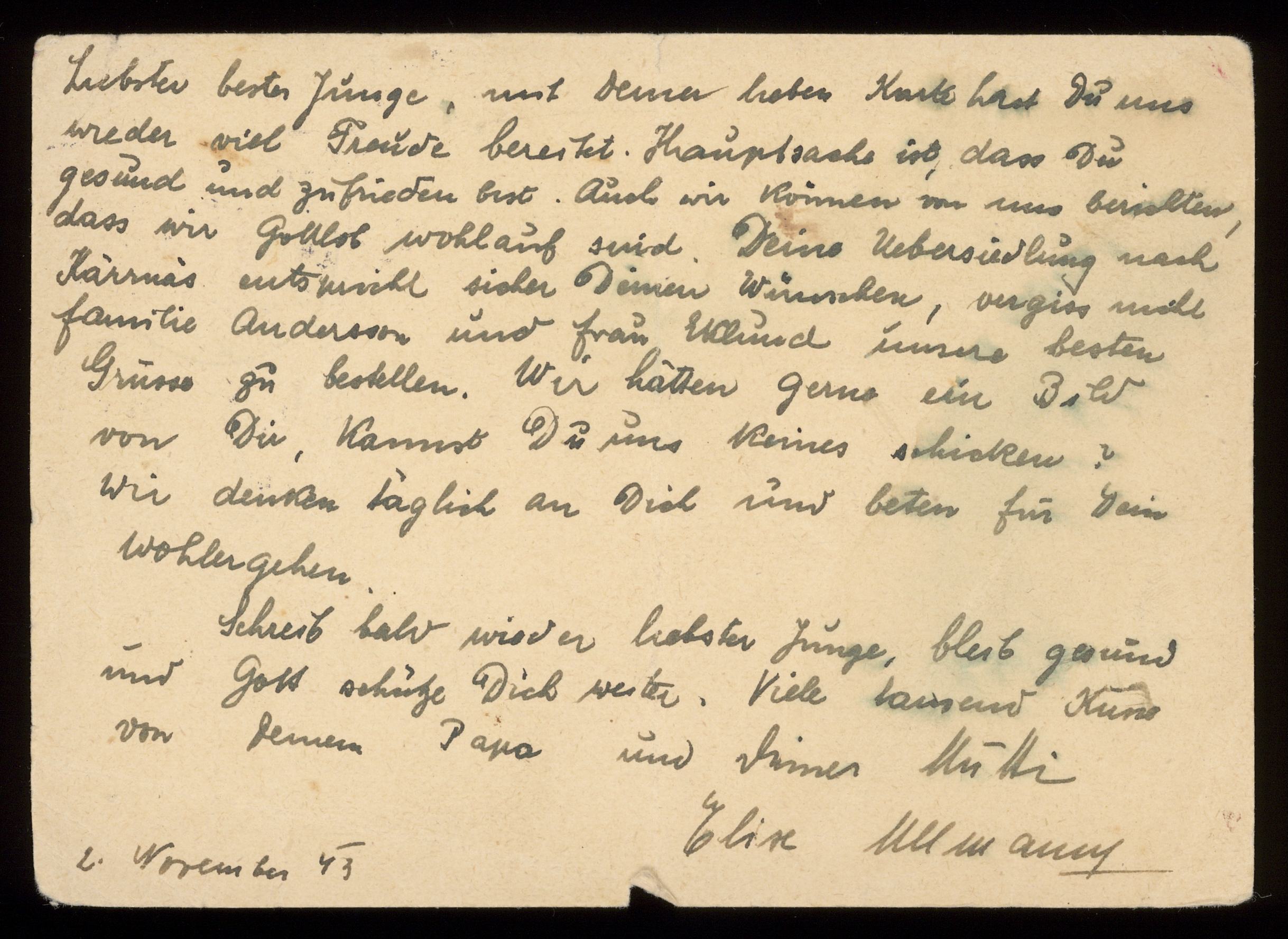 Brev från Elise och Josef Ullmann 1943-11-02