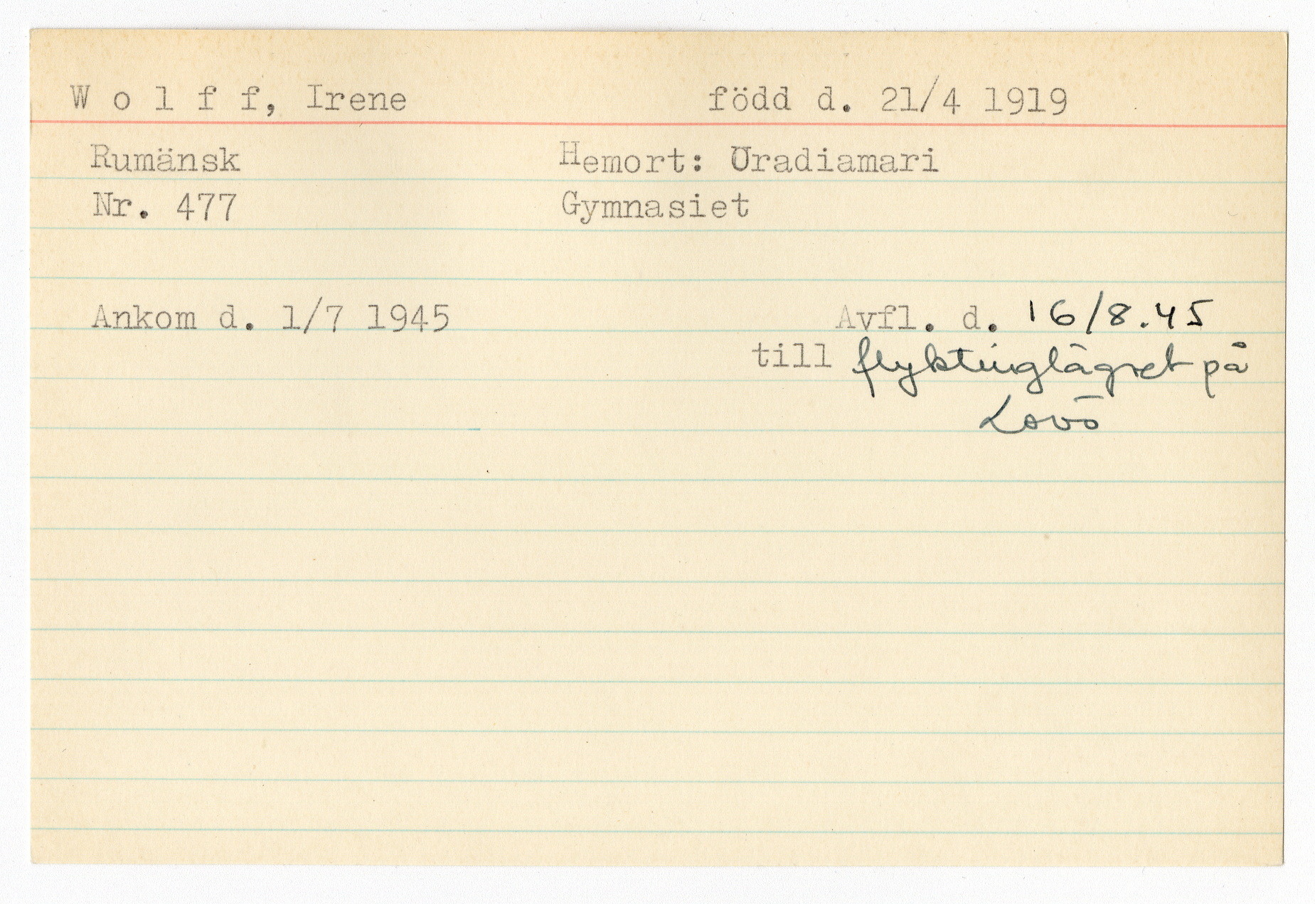 Registerkort Irene Wolff