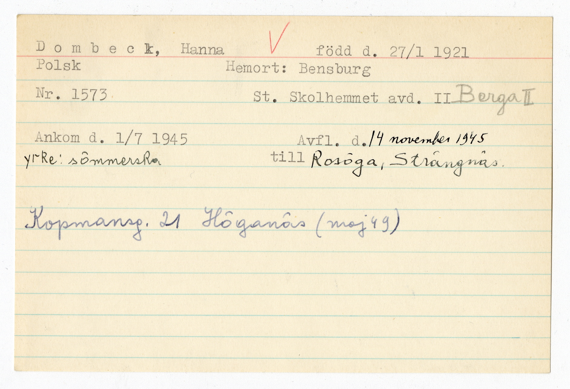 Registerkort Hanna Dombeck