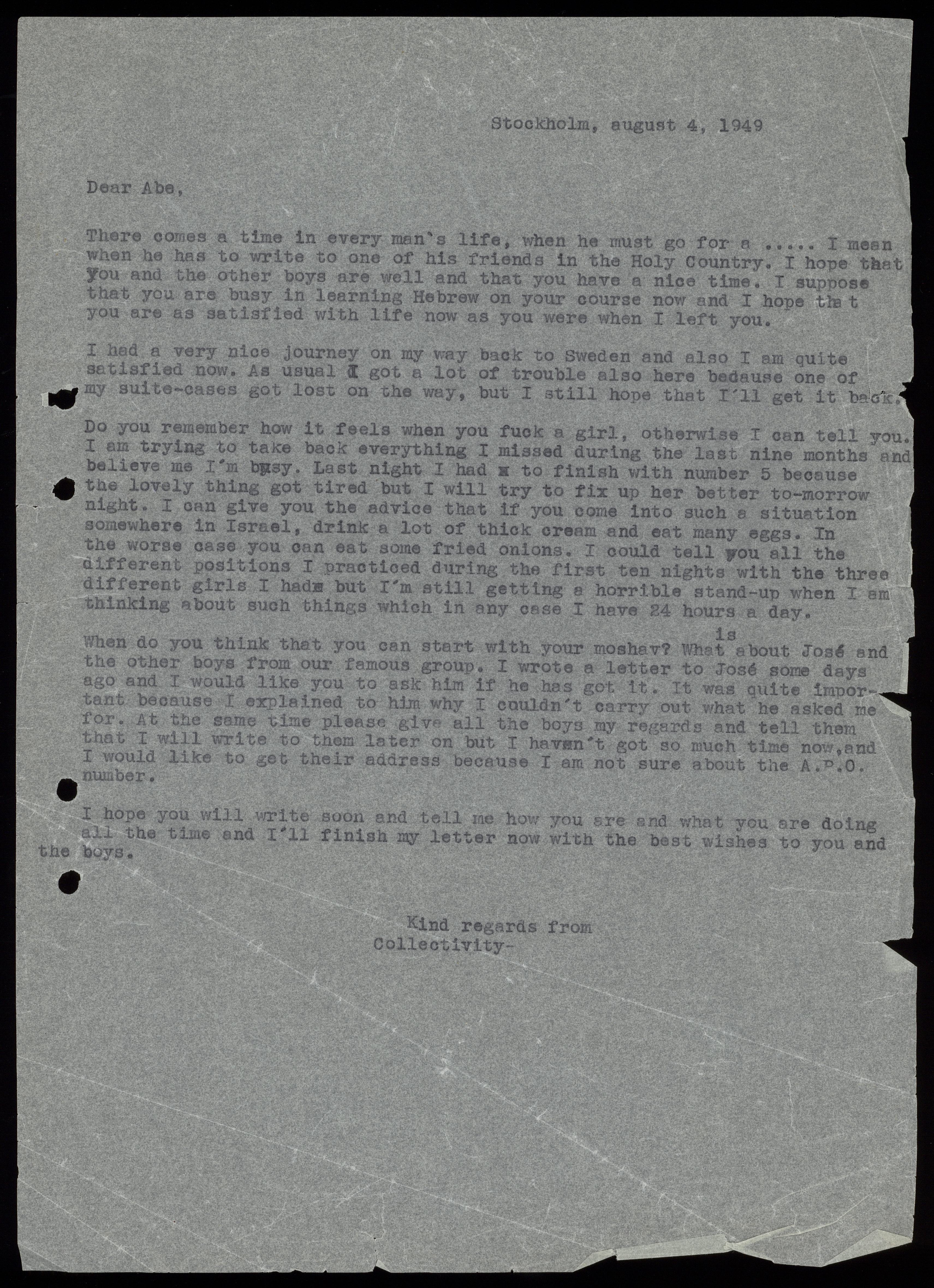 Brev från Otto Ullman 4 august 1949 Stockholm.