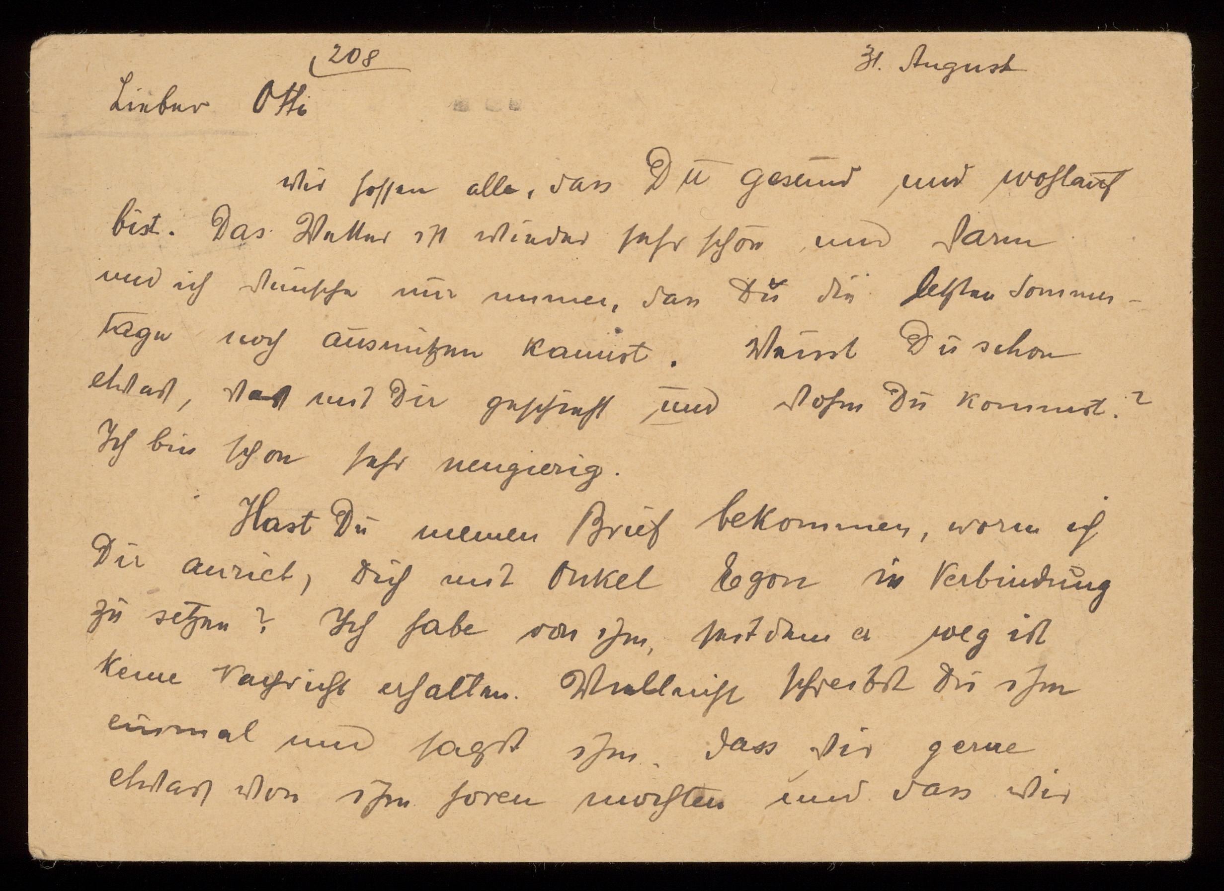 Brev till Otto Ullman från föräldrarna Josef och Elise Ullmann daterat 31 augusti 1939 Wien.