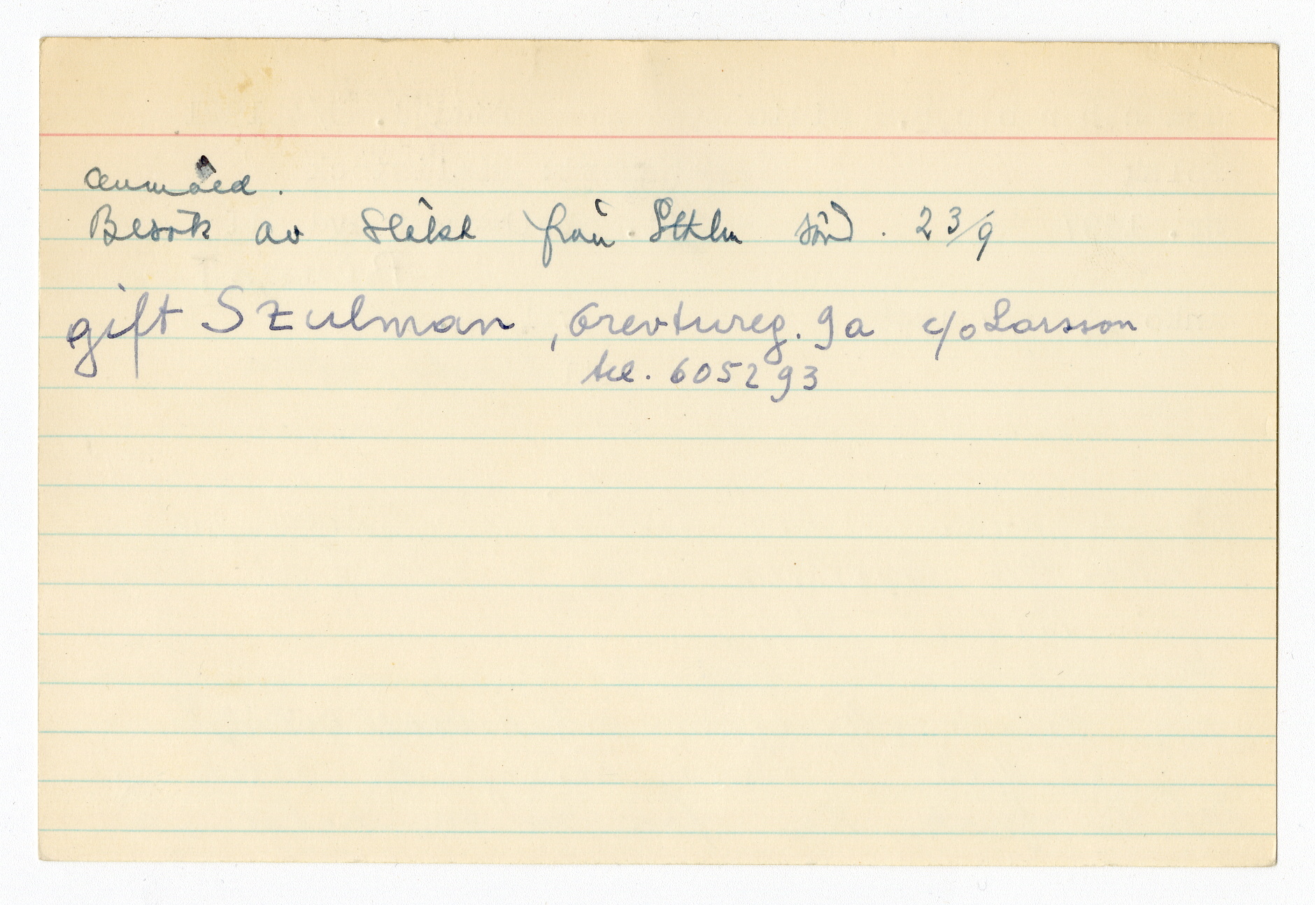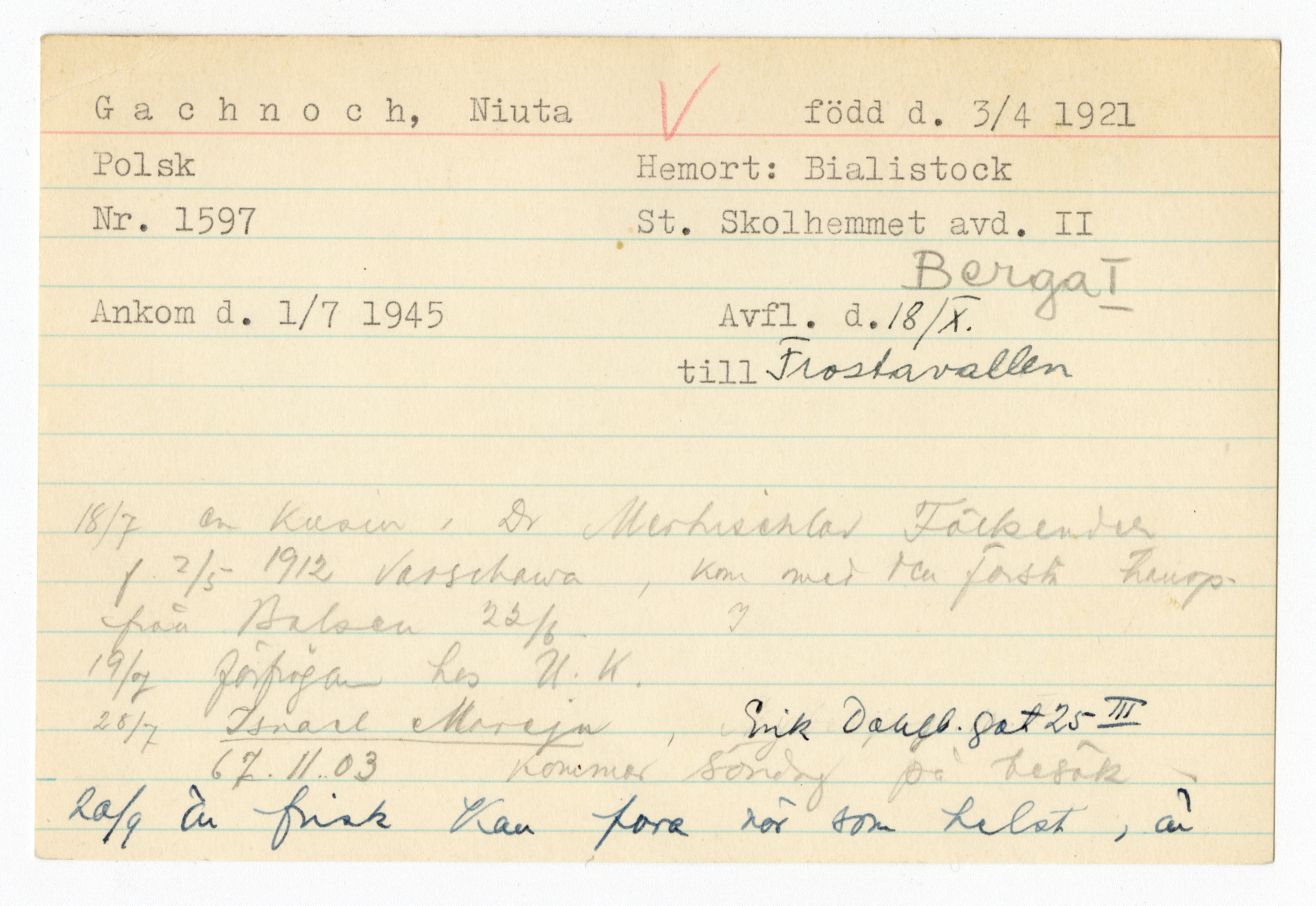 Ett skrivkort med patientuppgifter gällande Niuta Gachnoch.