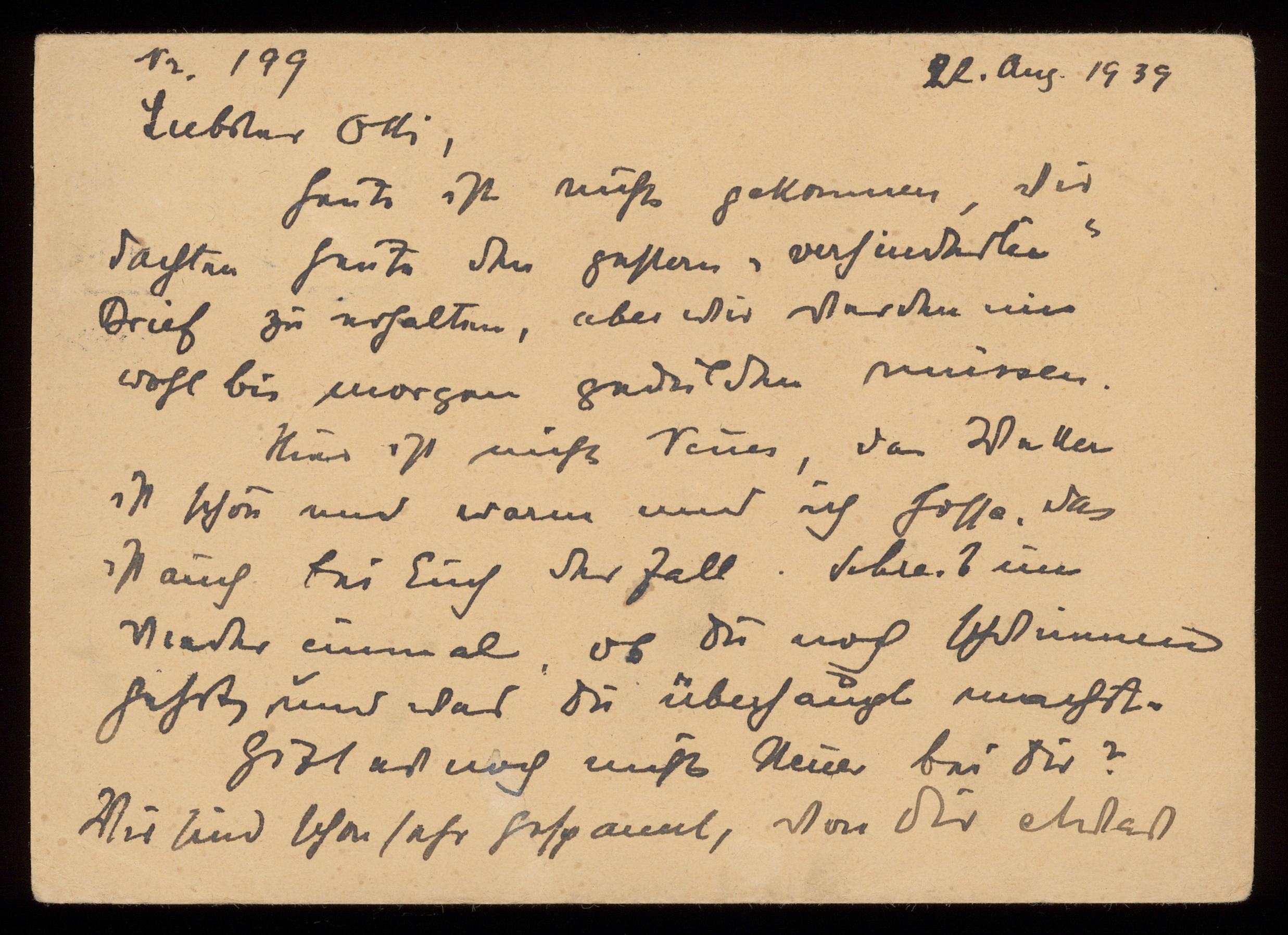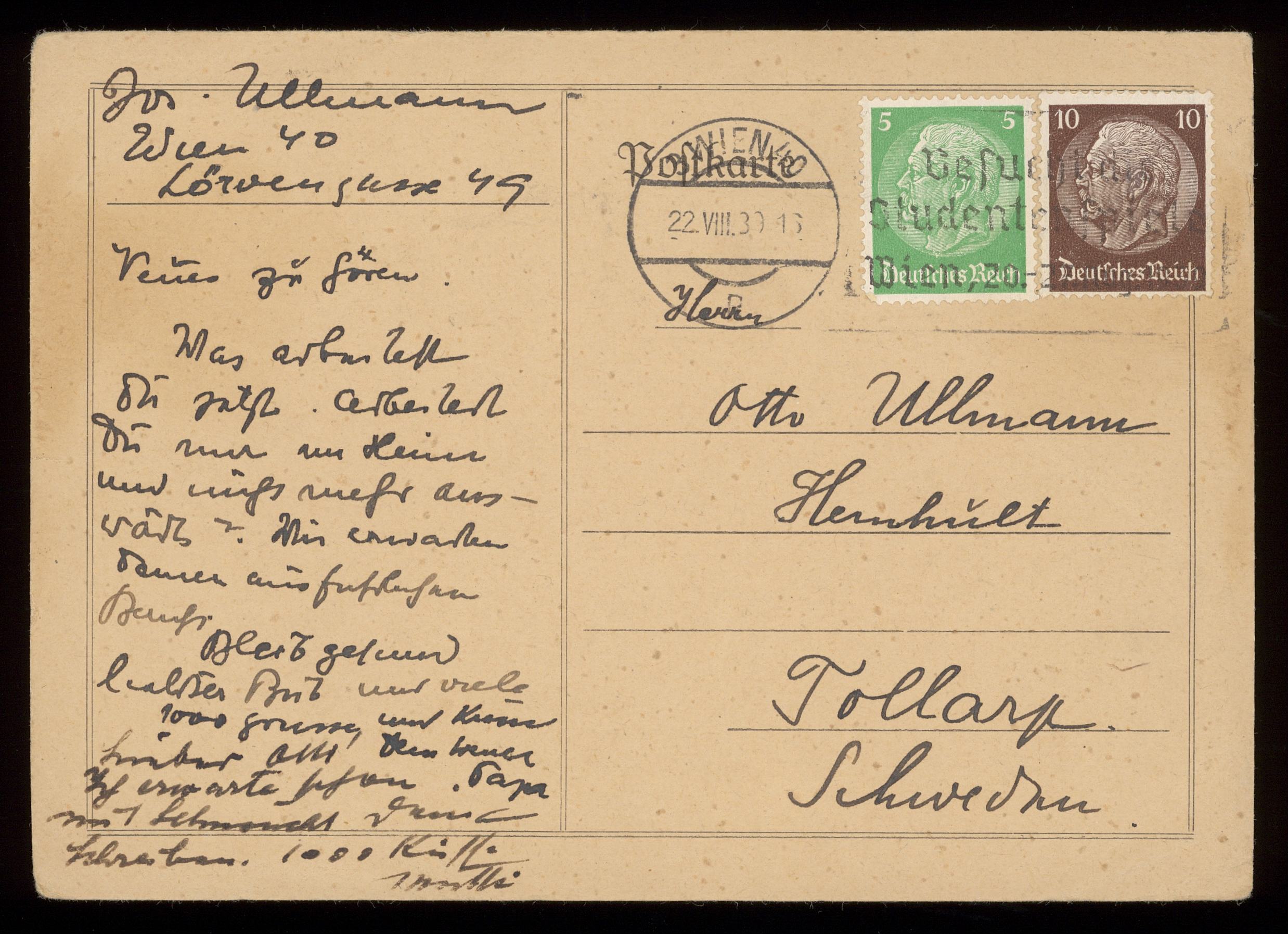 Brev till Otto Ullman från föräldrarna Josef och Elise Ullmann daterat 22 augusti 1939 Wien.