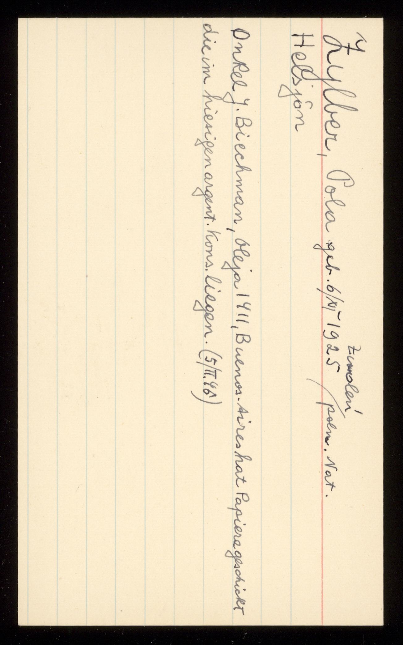 Ett skrivkort med patientuppgifter gällande Pola Zyller.