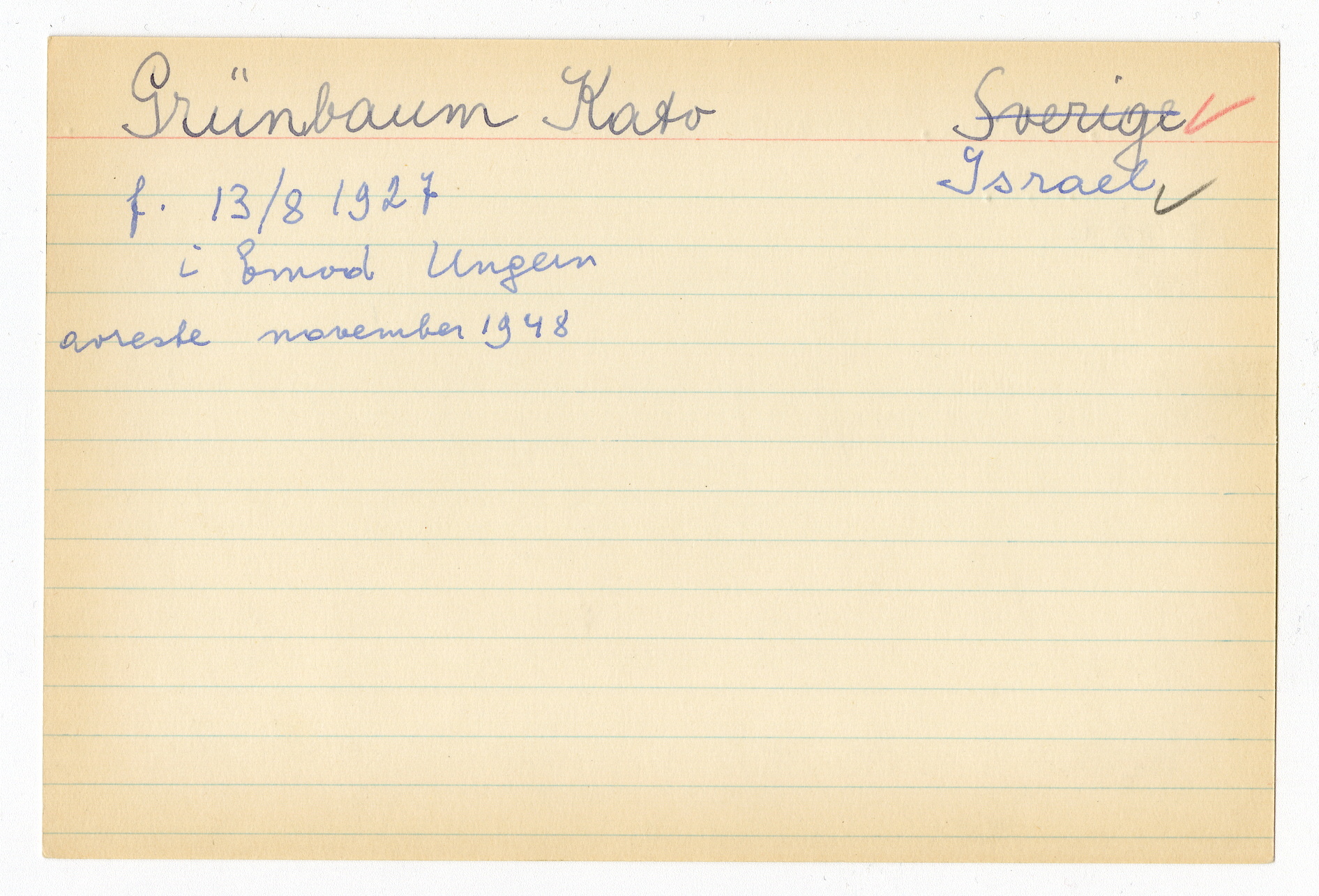 Registerkort Kato Grünbaum och Bozena Stein